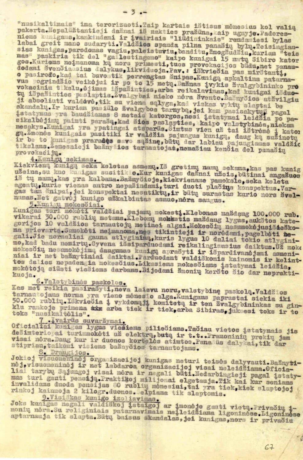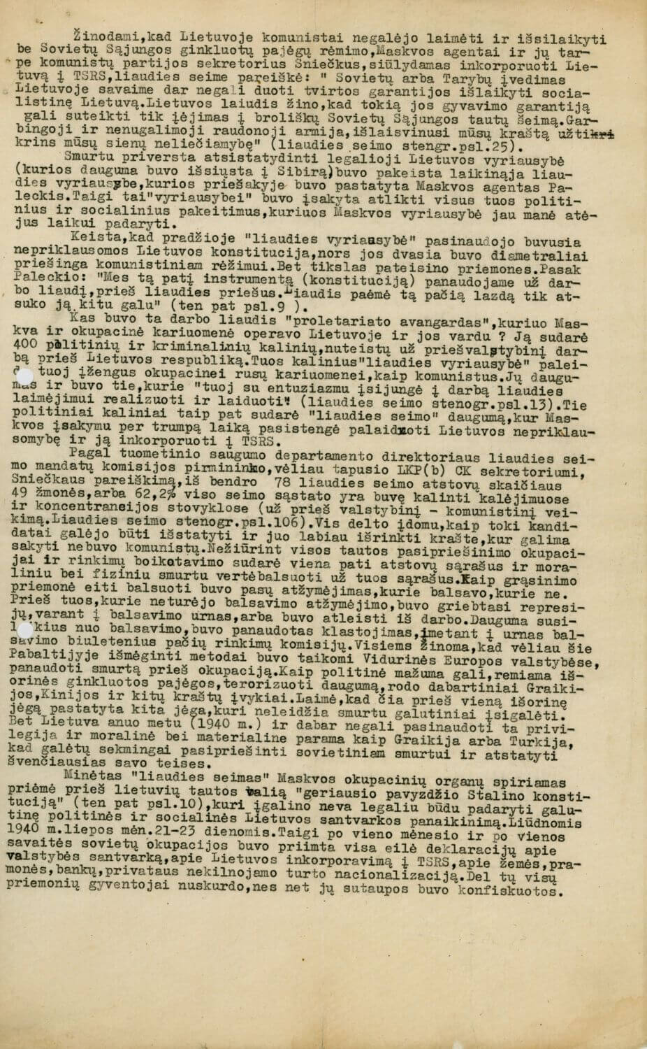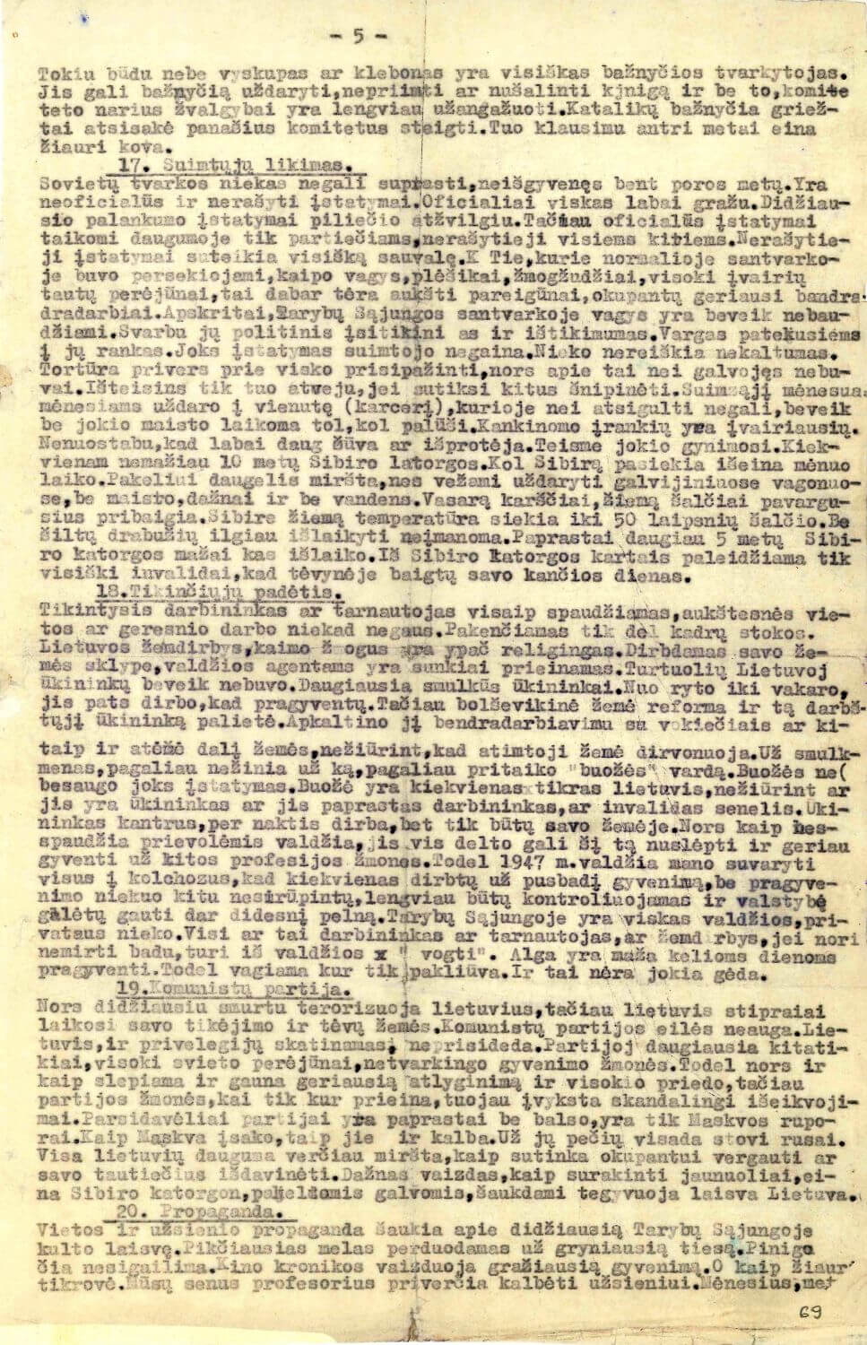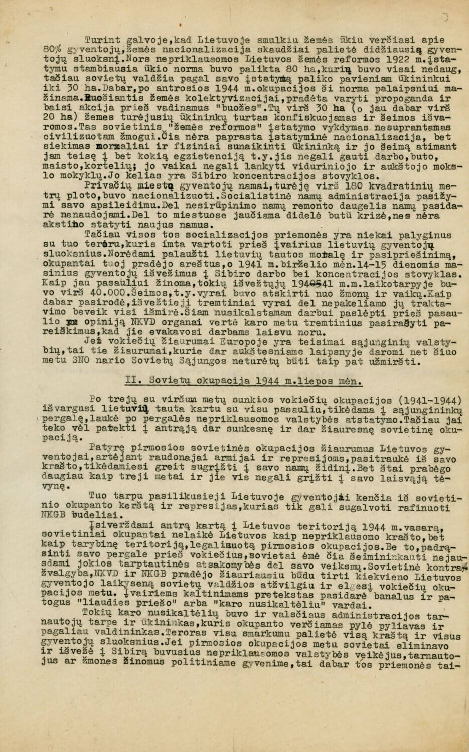Dokumentas buvo skirtas gabenimui į užsienį, konspiracijos tikslais atspausdintas ant šilkinės medžiagos. 1947 m. balandžio 28 d.