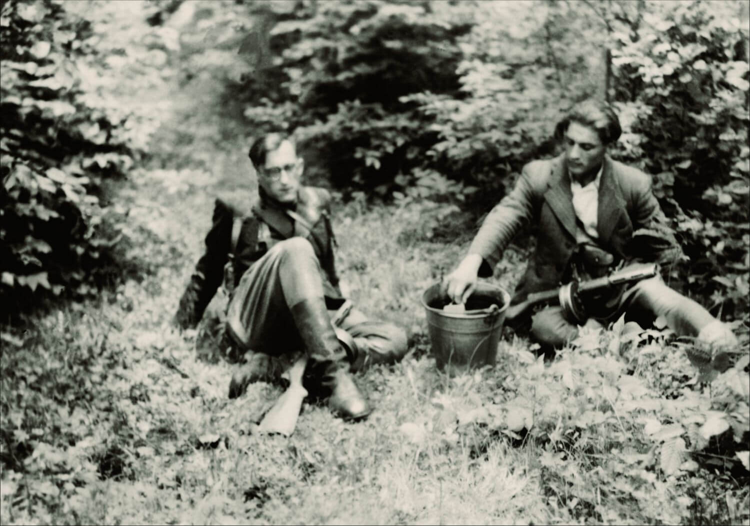 Vyriausiojo ginkluotųjų pajėgų štabo įgaliotiniai užsieniui Jurgis Krikščiūnas-Vytautas (kairėje) ir Juozas Lukša-Kęstutis (dešinėje) kelionėje į Lenkiją. 1947 m. gegužės mėn.