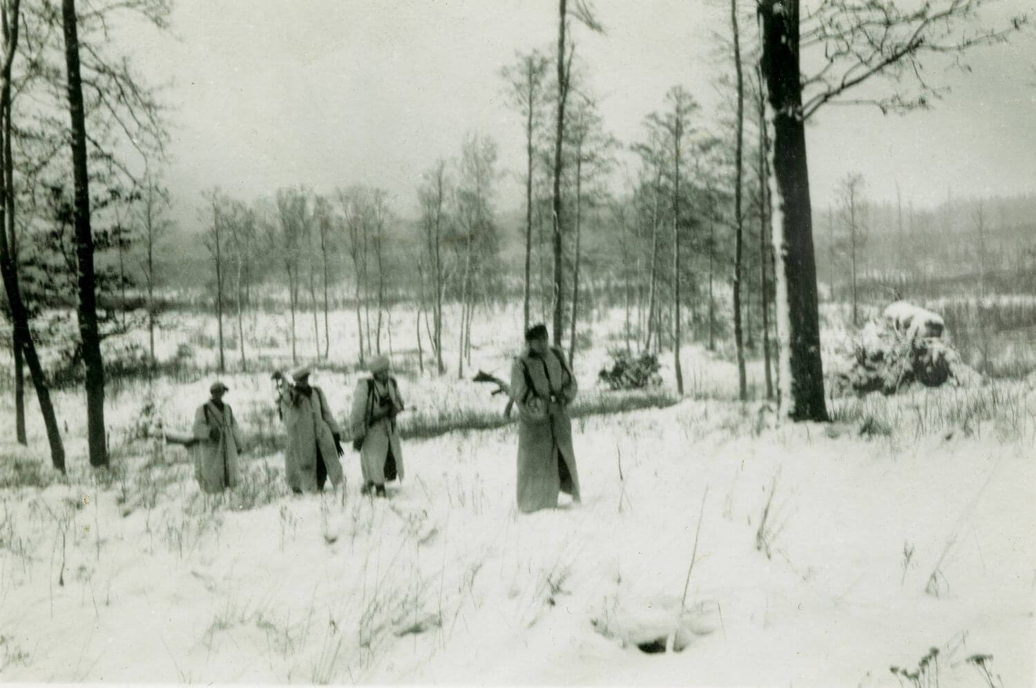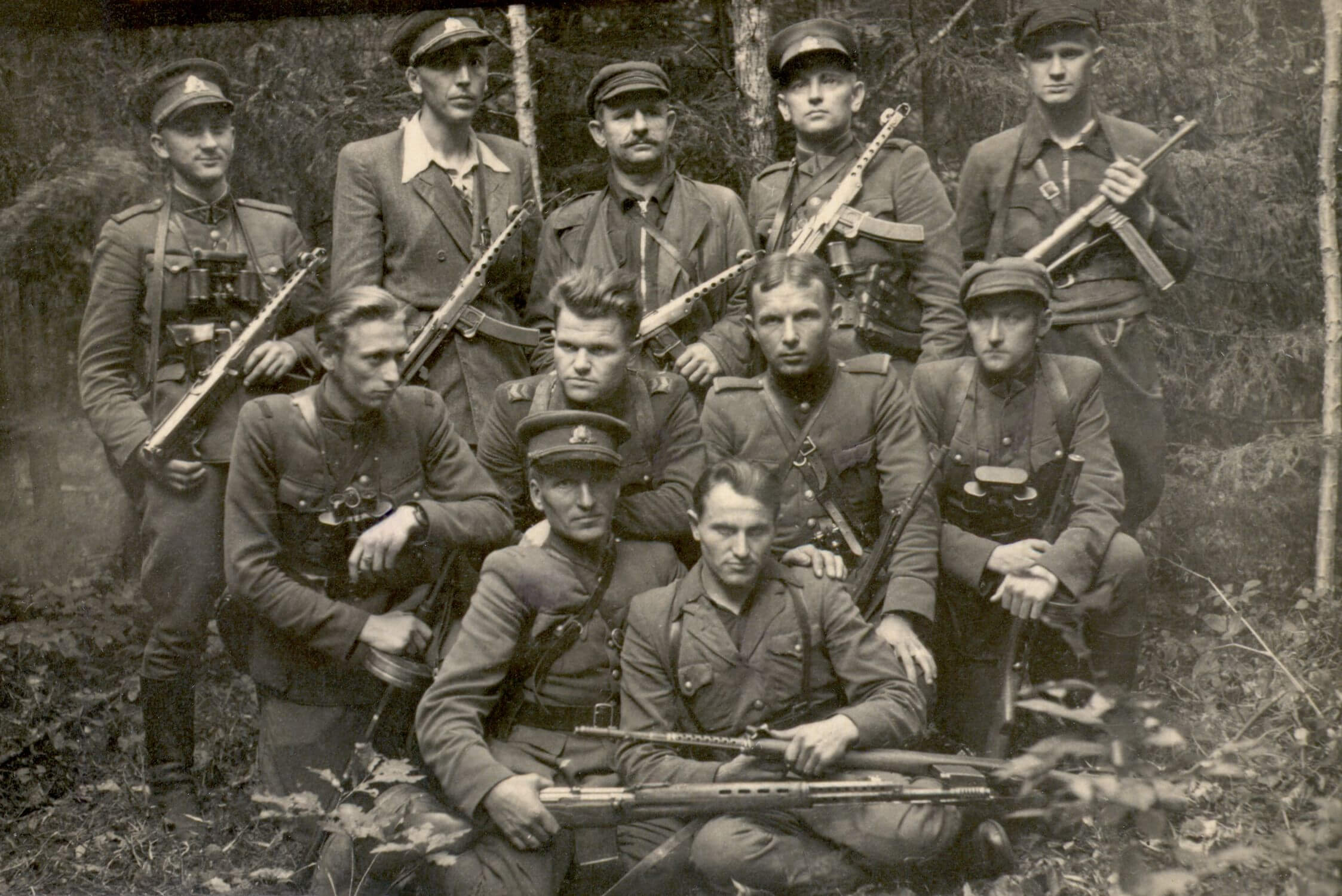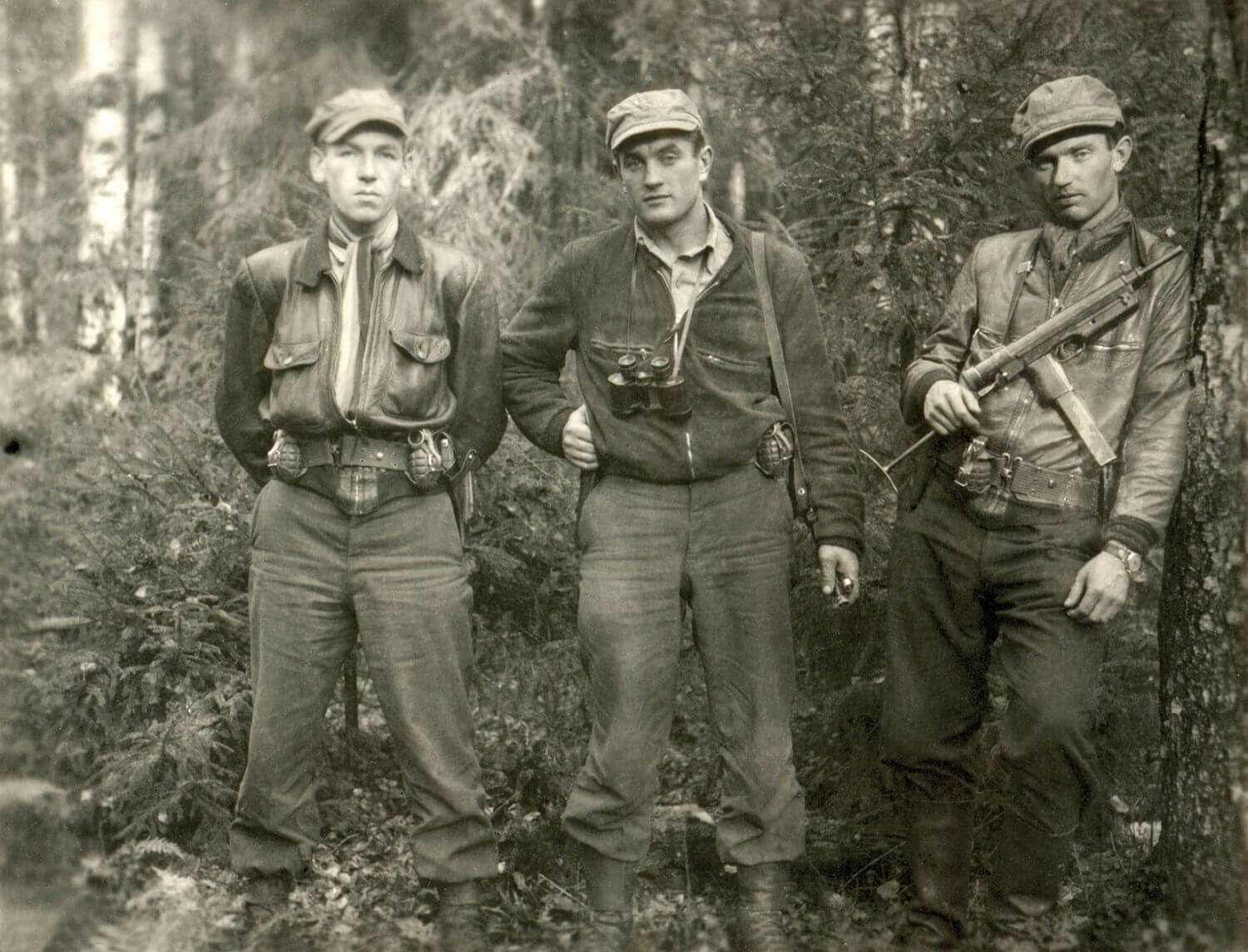 Iš Vakarų grįžę partizanai desantininkai. Kazlų Rūdos miškai, 1950 m. spalio mėn.