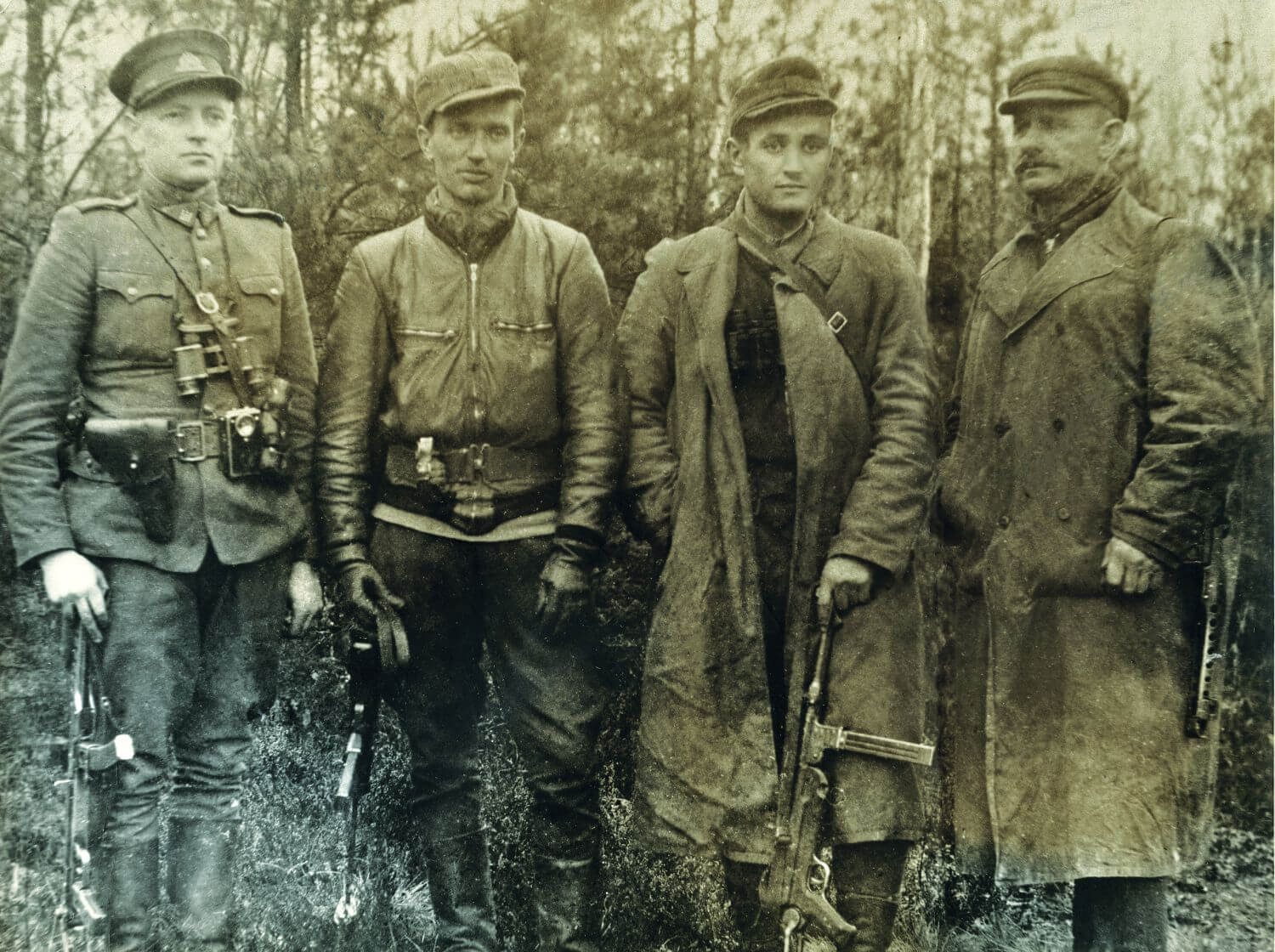 Iš kairės: Lietuvos laisvės kovos sąjūdžio (LLKS) Gynybos pajėgų vadas Adolfas Ramanauskas-Vanagas, partizanas desantininkas Benediktas Trumpys-Rytis, LLKS atstovas užsieniui, Gynybos pajėgų štabo Žvalgybos skyriaus viršininkas Juozas Lukša-Mykolaitis ir Pietų Lietuvos (Nemuno) partizanų srities vadas Sergijus Staniškis-Viltis.