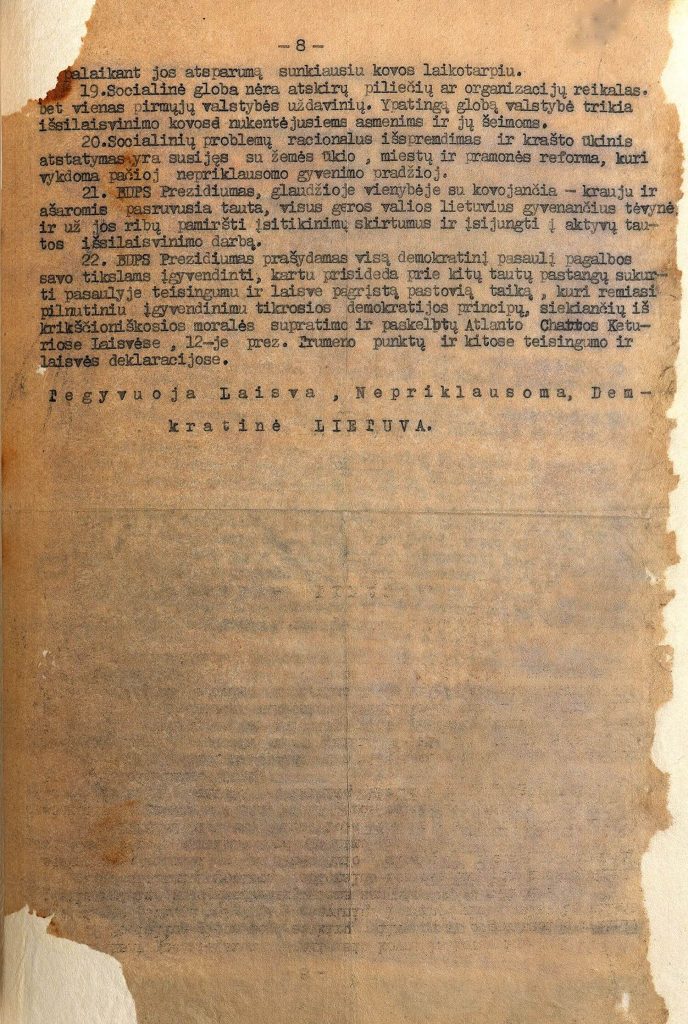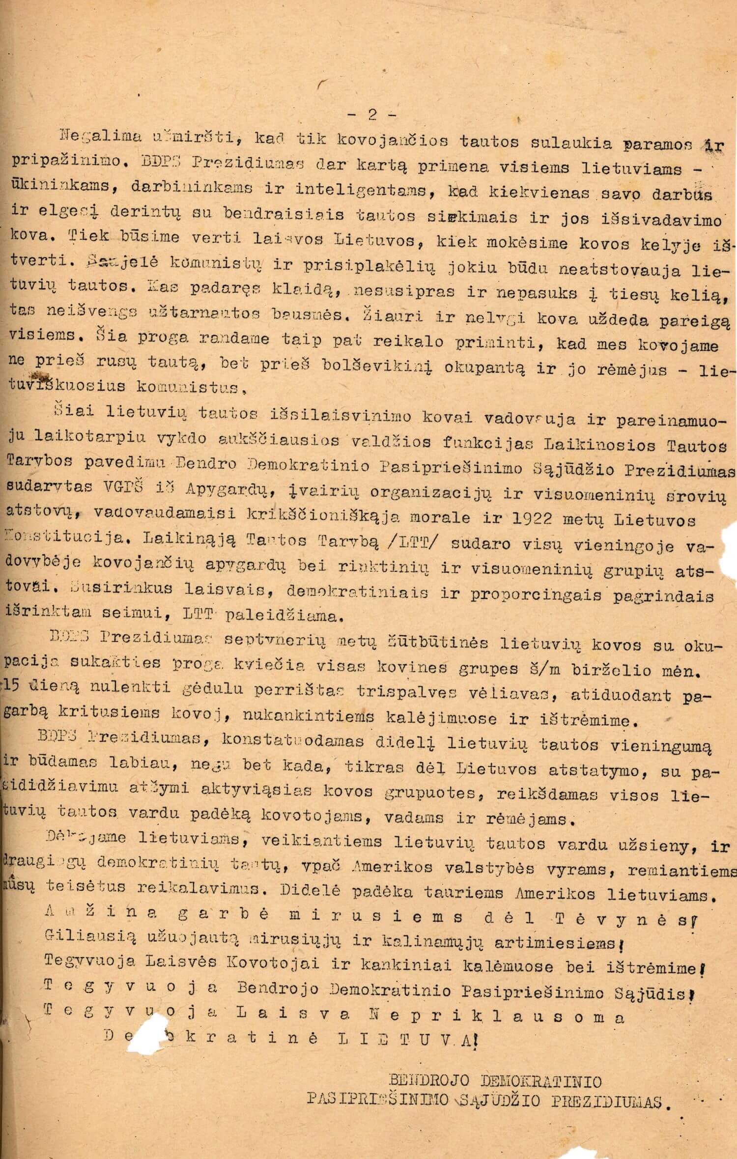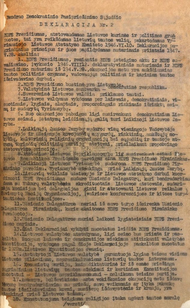 Bendrojo demokratinio pasipriešinimo sąjūdžio (BDPS) deklaracija Nr. 2. 1947 m.