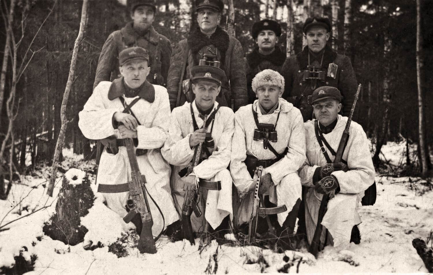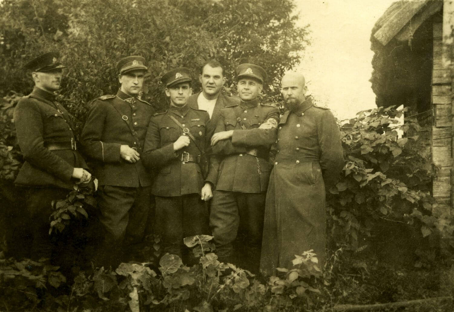 Stovi iš kairės: Vytauto rinktinės štabo Žvalgybos skyriaus viršininkas Albinas Ratkelis-Oželis, apygardos vadas Antanas Baltūsis-Žvejys, Vytauto rinktinės vadas Vytautas (Vitalius) Gavėnas-Vampyras, apygardos štabo Politinės dalies viršininkas Alfonsas Vabalas-Gediminas, apygardos adjutantas Jonas Pileckis-Šarūnas, Šarūno rinktinės vadas Vladas Stepulevičius-Mindaugas.