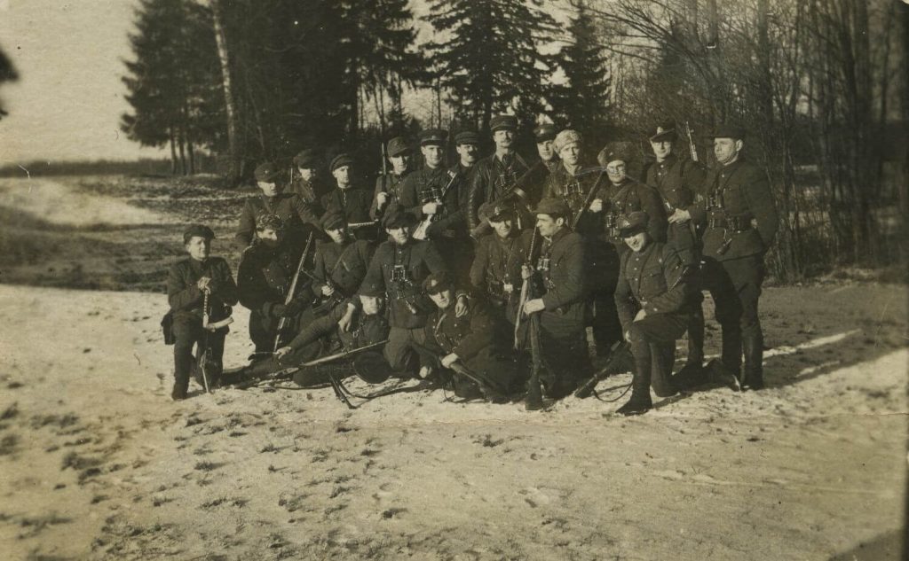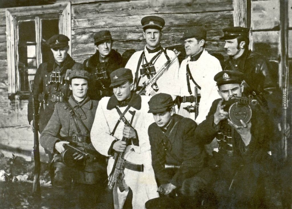 Tauro apygardos vadas Aleksandras Grybinas-Faustas (stovi antroje eilėje centre) pakeliui į visos Lietuvos partizanų vadų suvažiavimą. 1948 m.