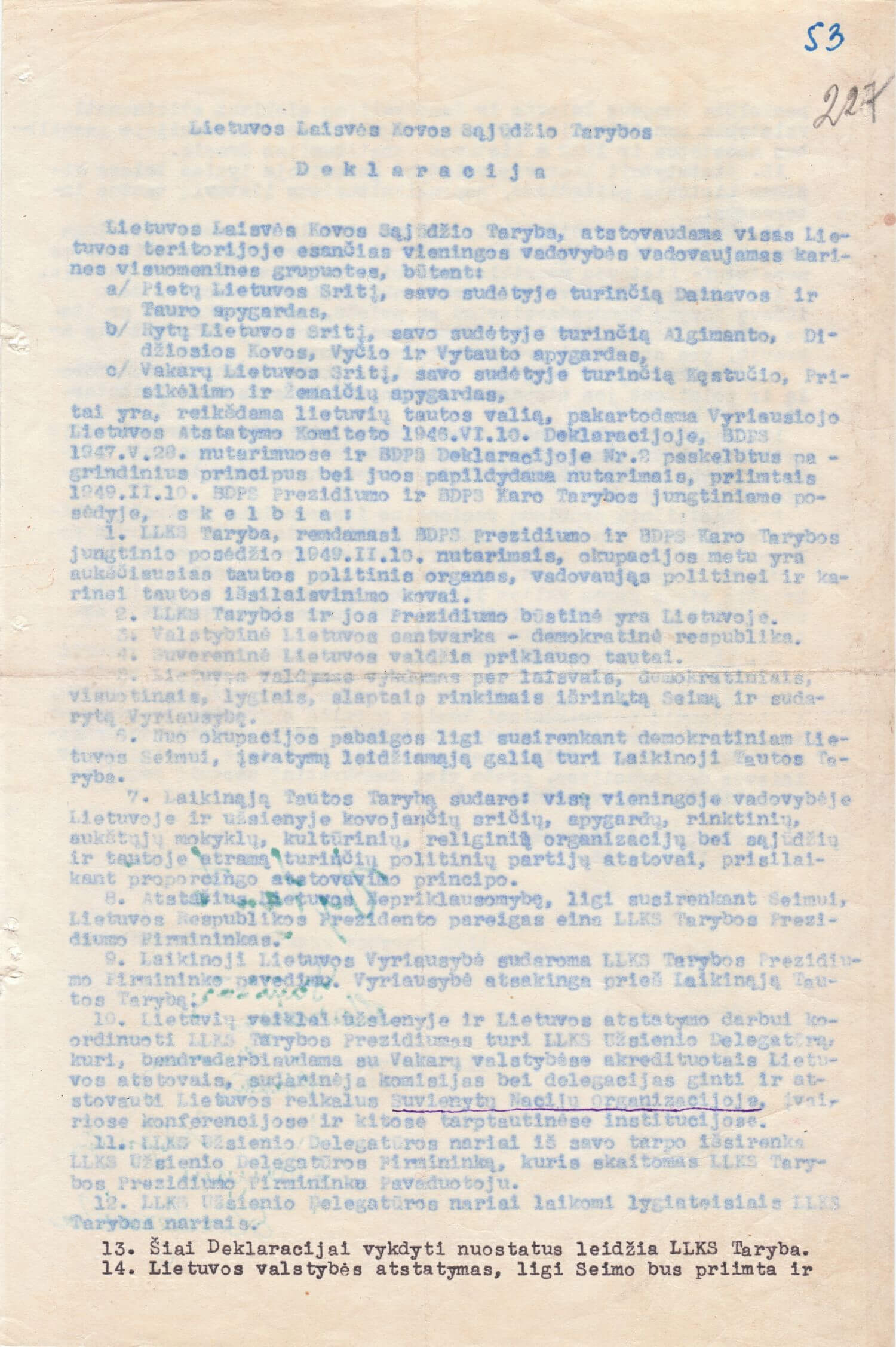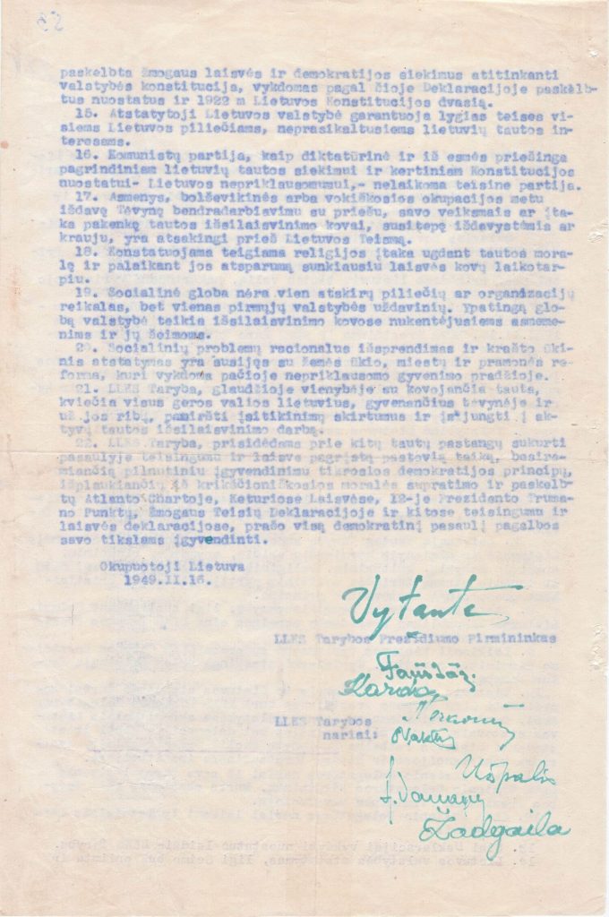 Lietuvos Laisvės Kovos Sąjūdžio Tarybos 1949 m. vasario 16-osios Deklaracija.