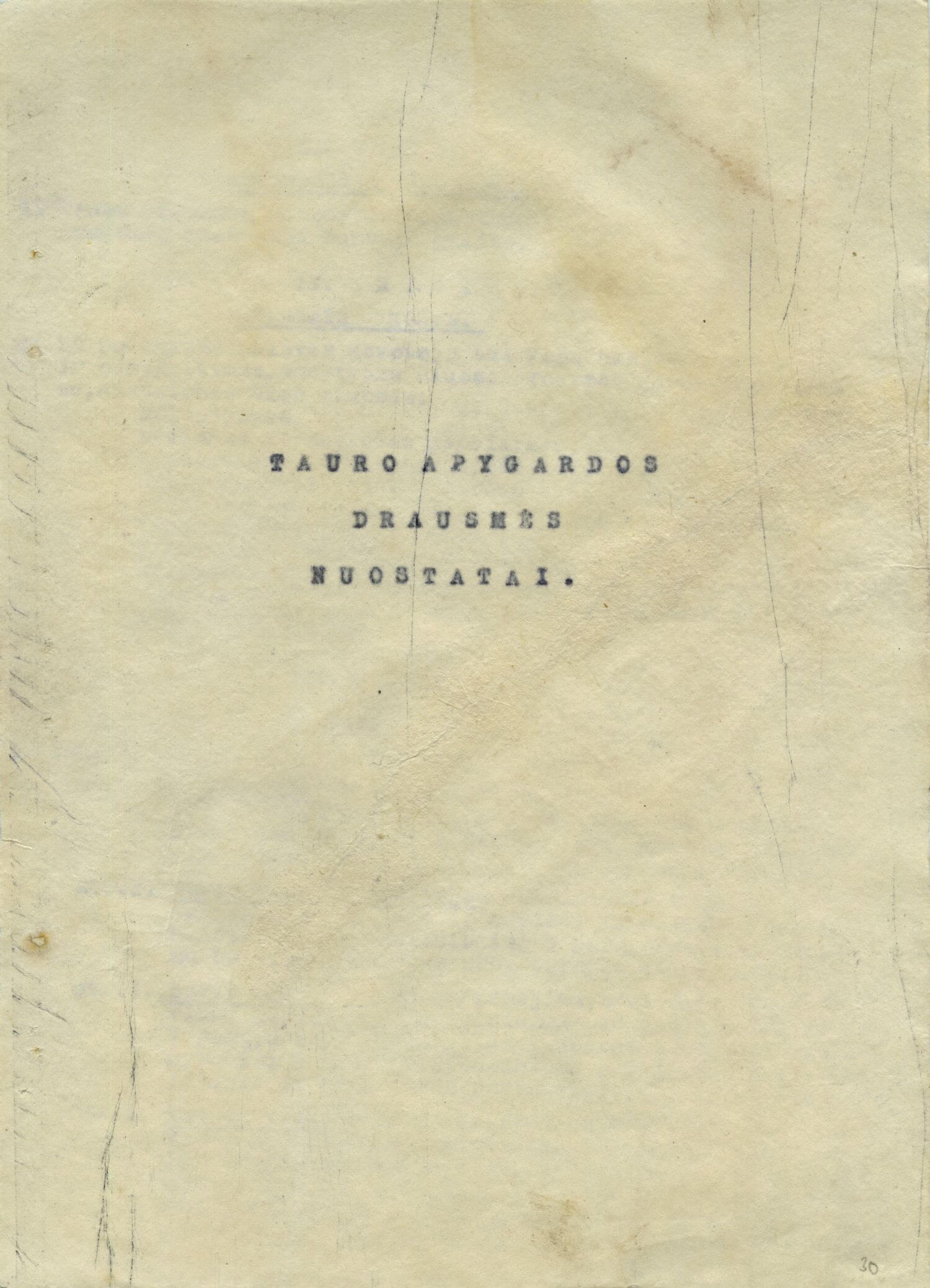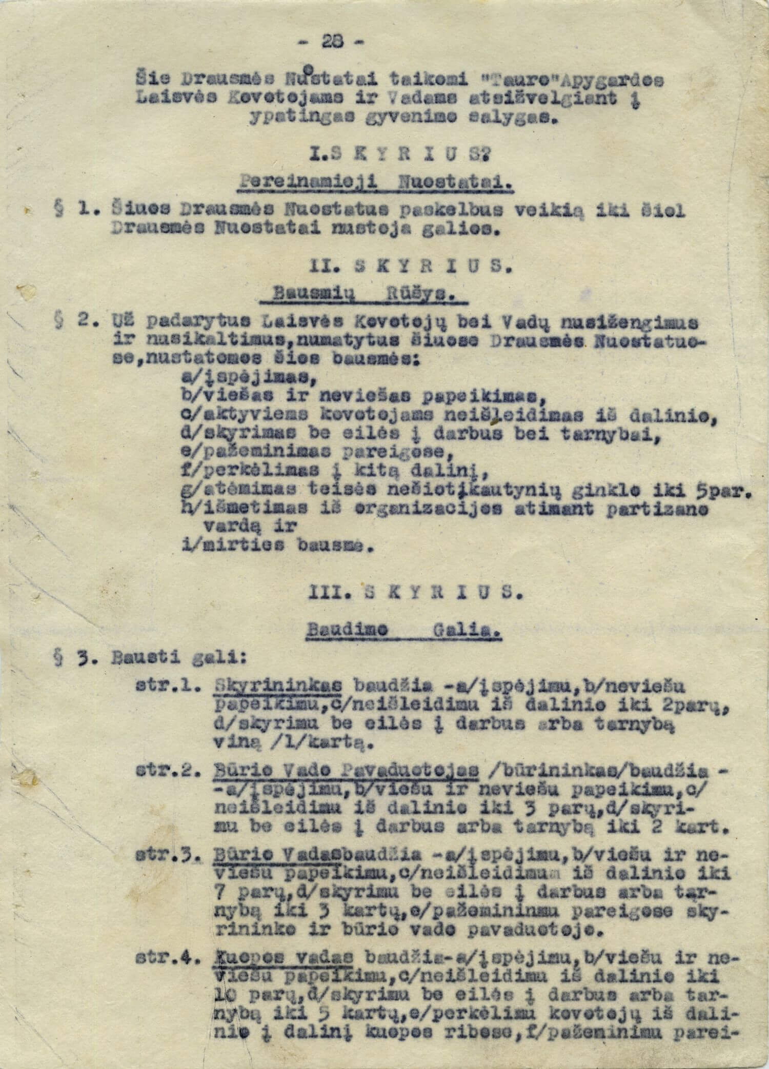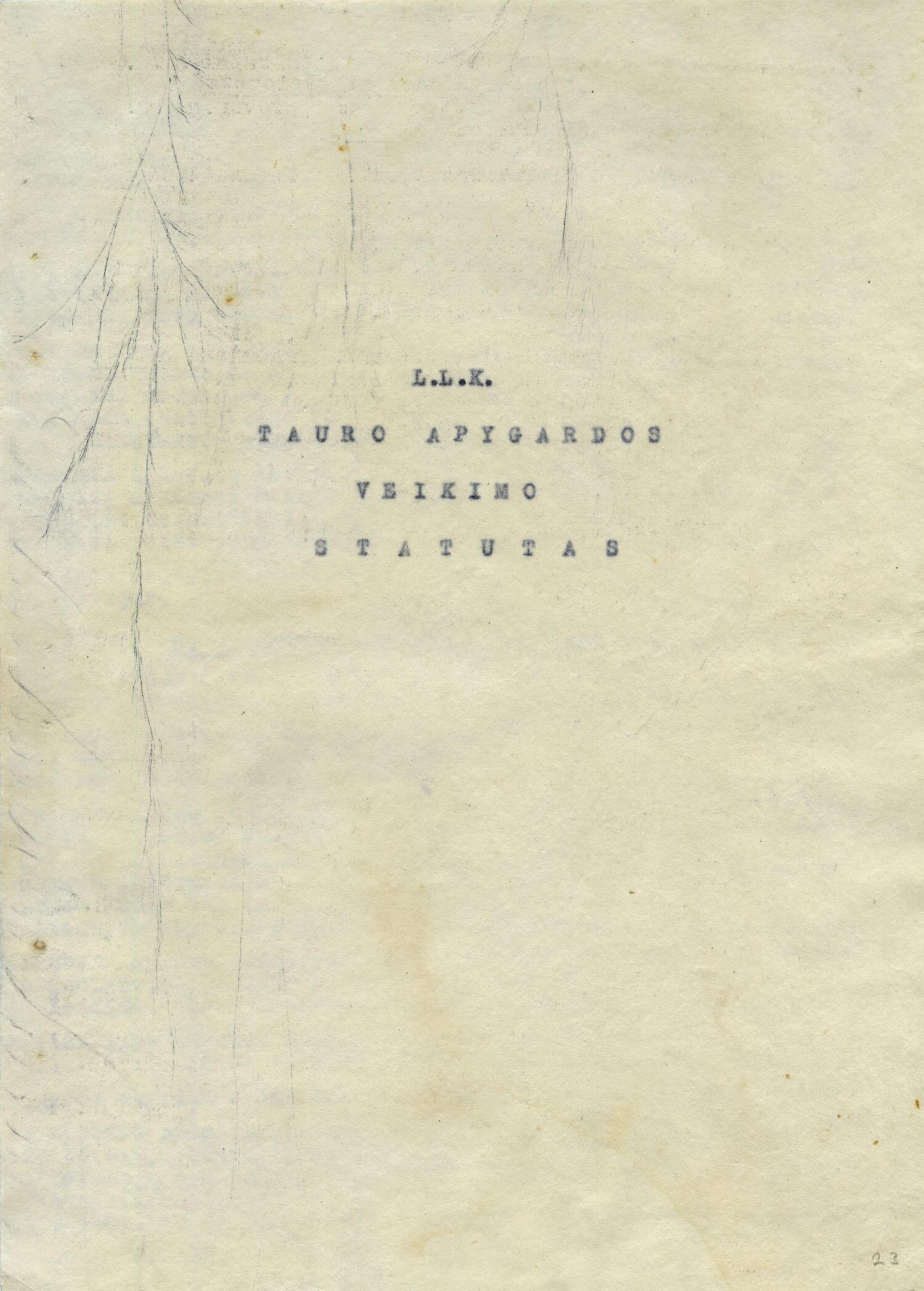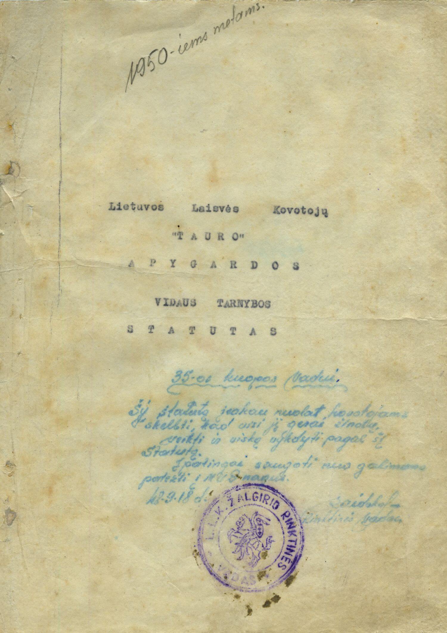 Tauro apygardos „Veikimo statutas“. Parengtas 1946–1948 m.