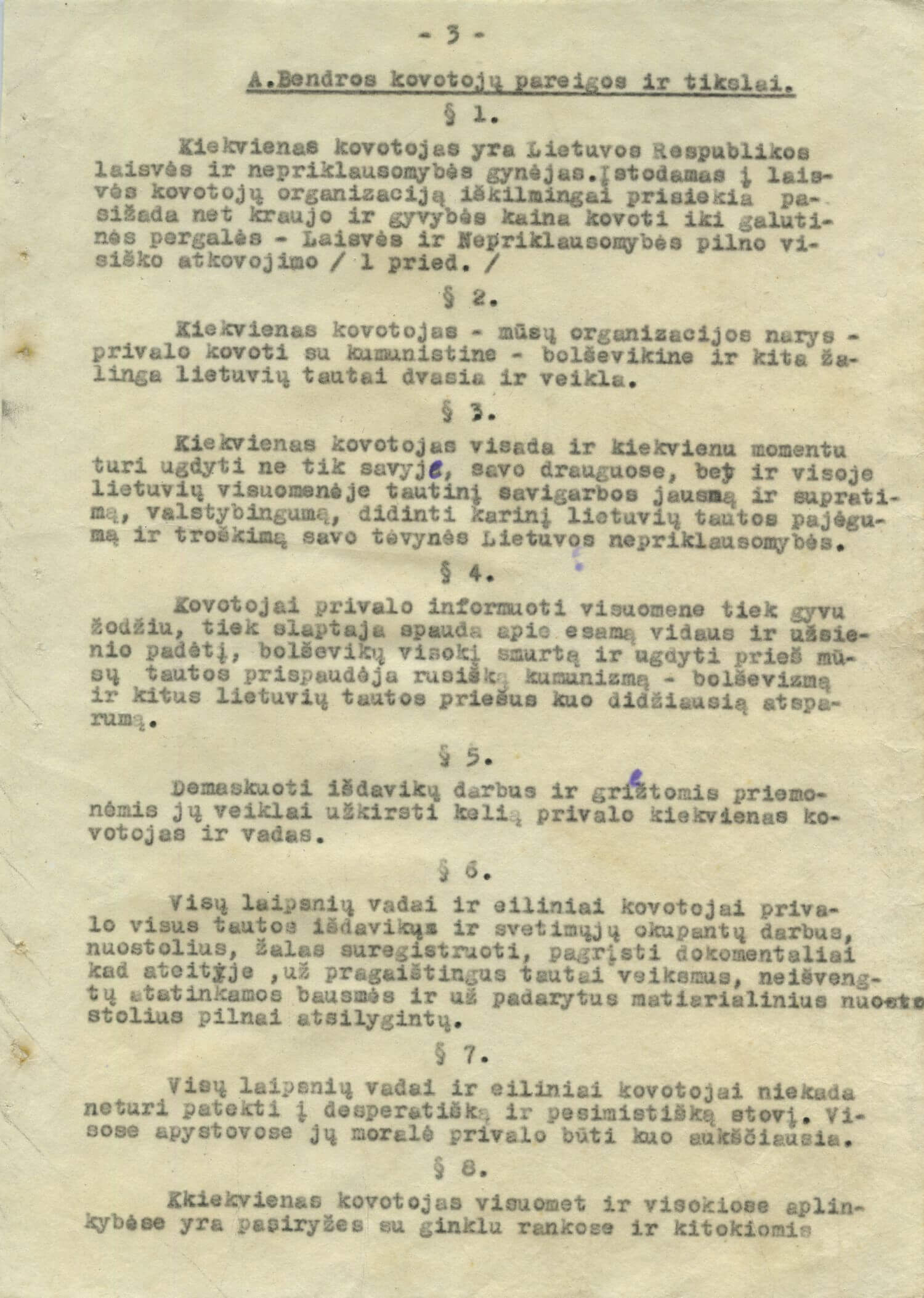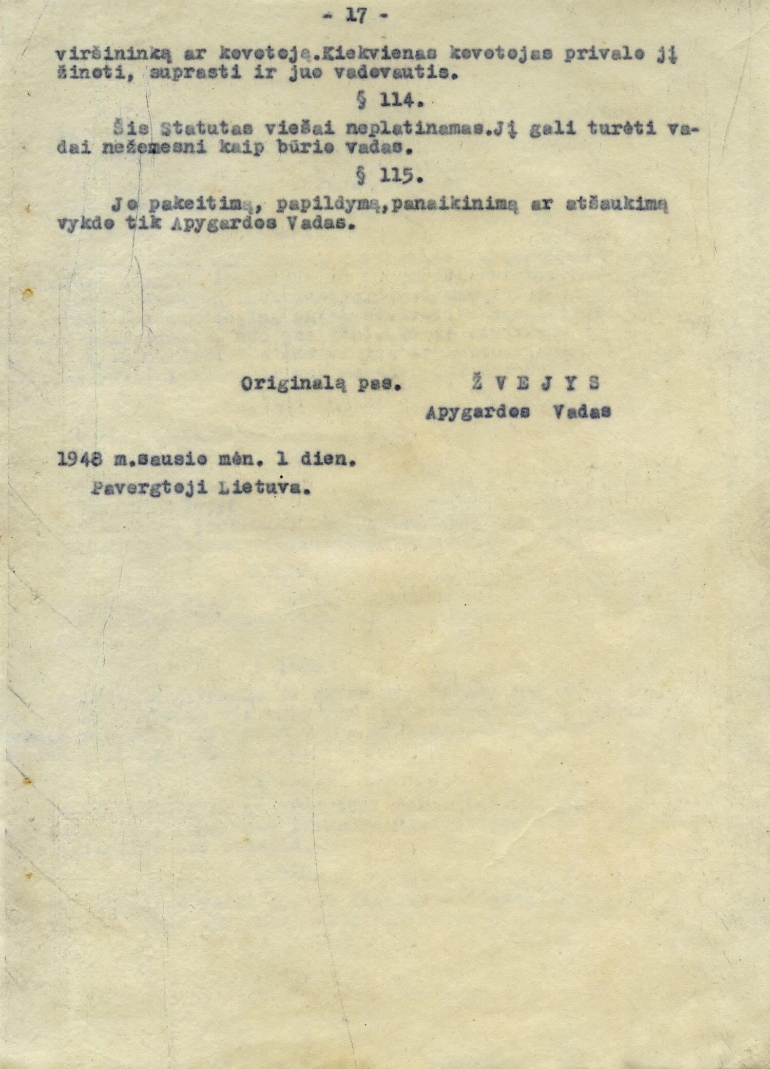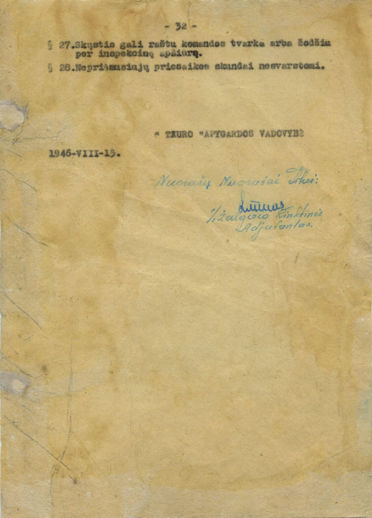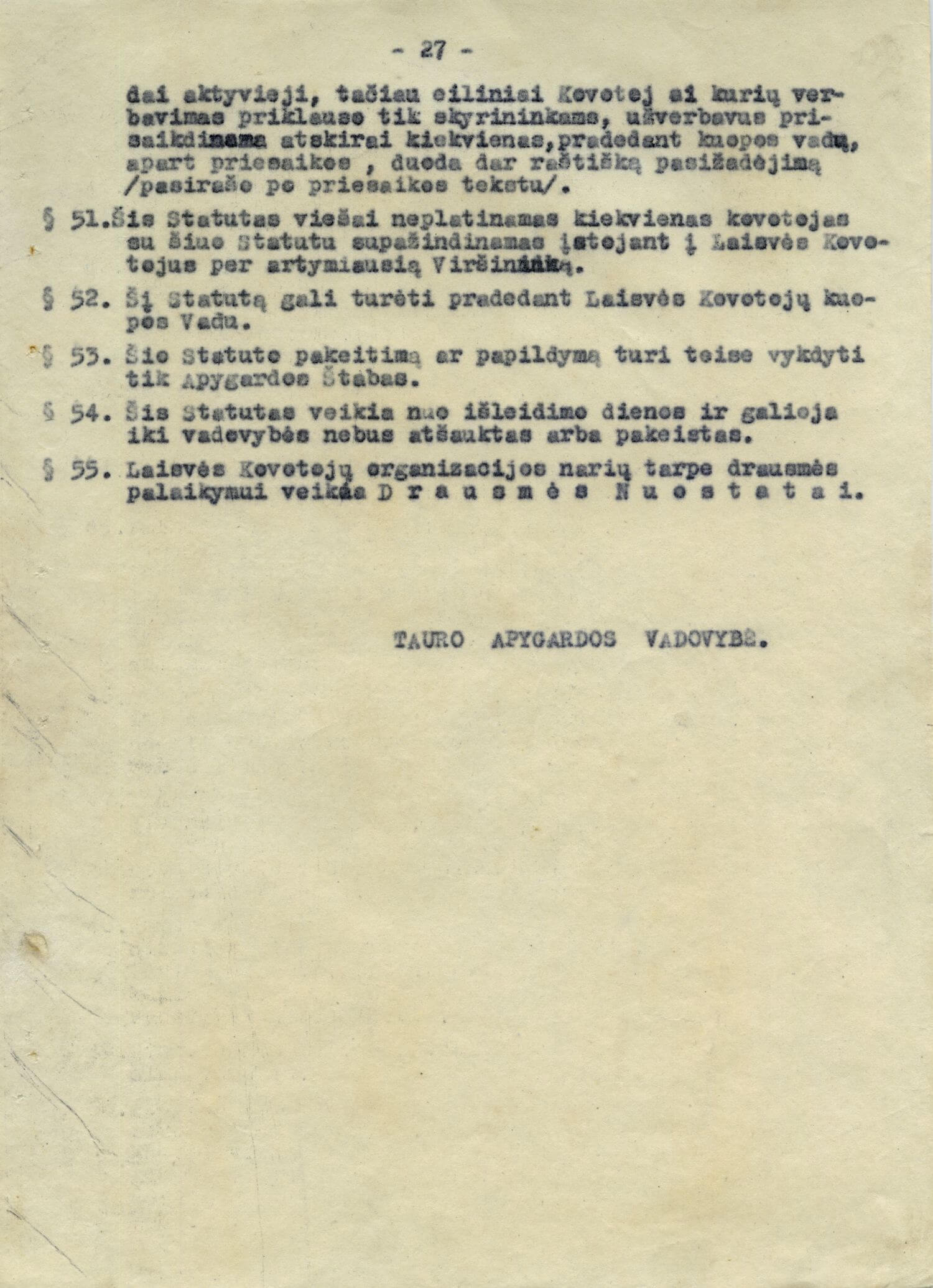Tauro apygardos „Veikimo statutas“. Parengtas 1946–1948 m.