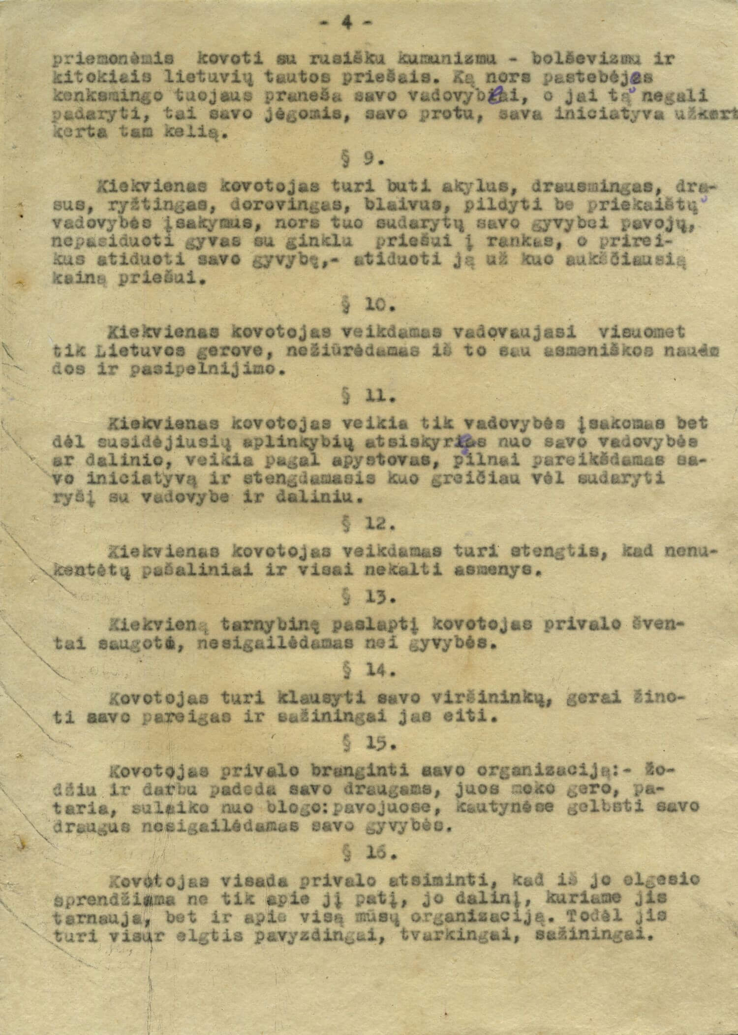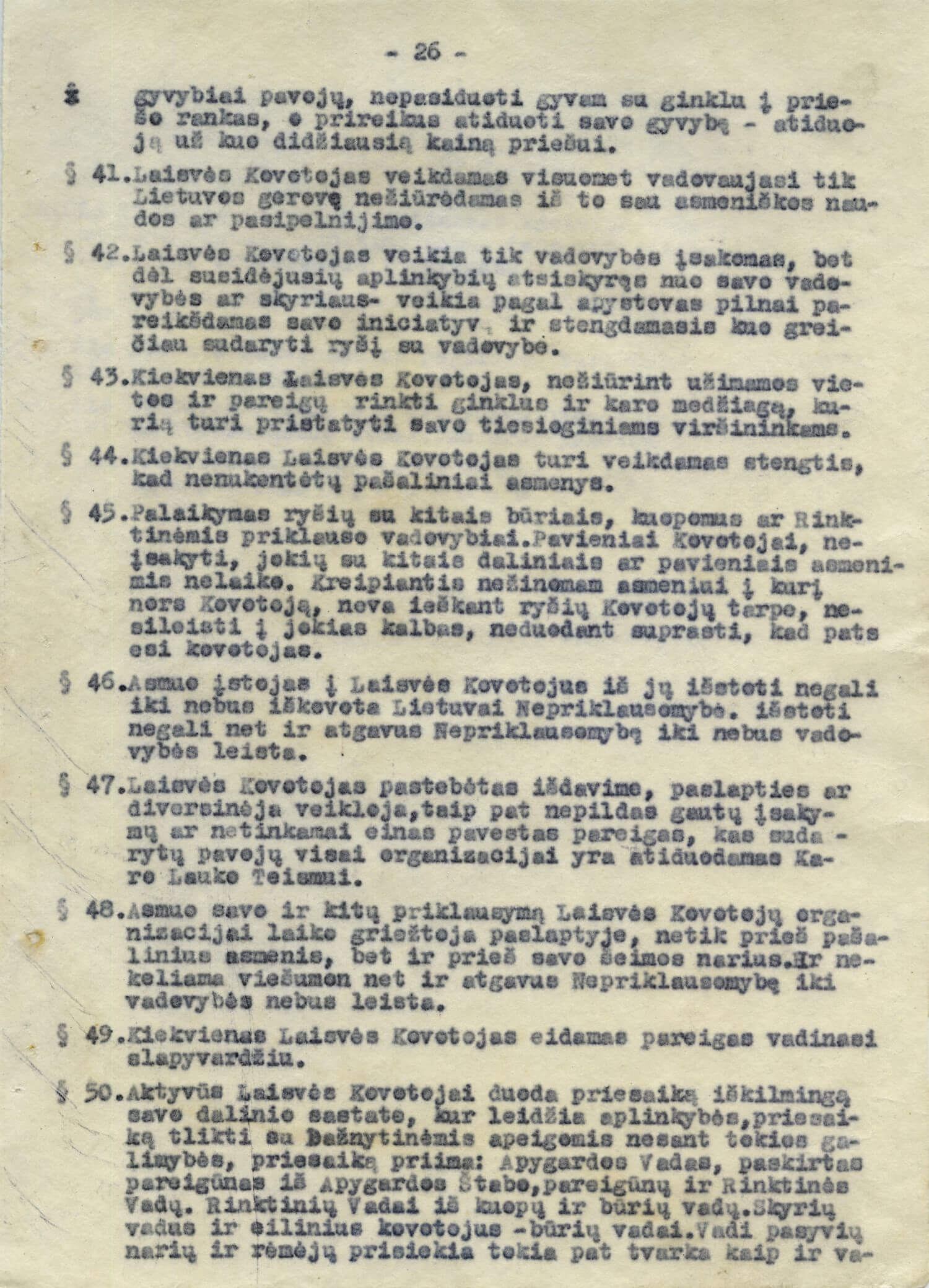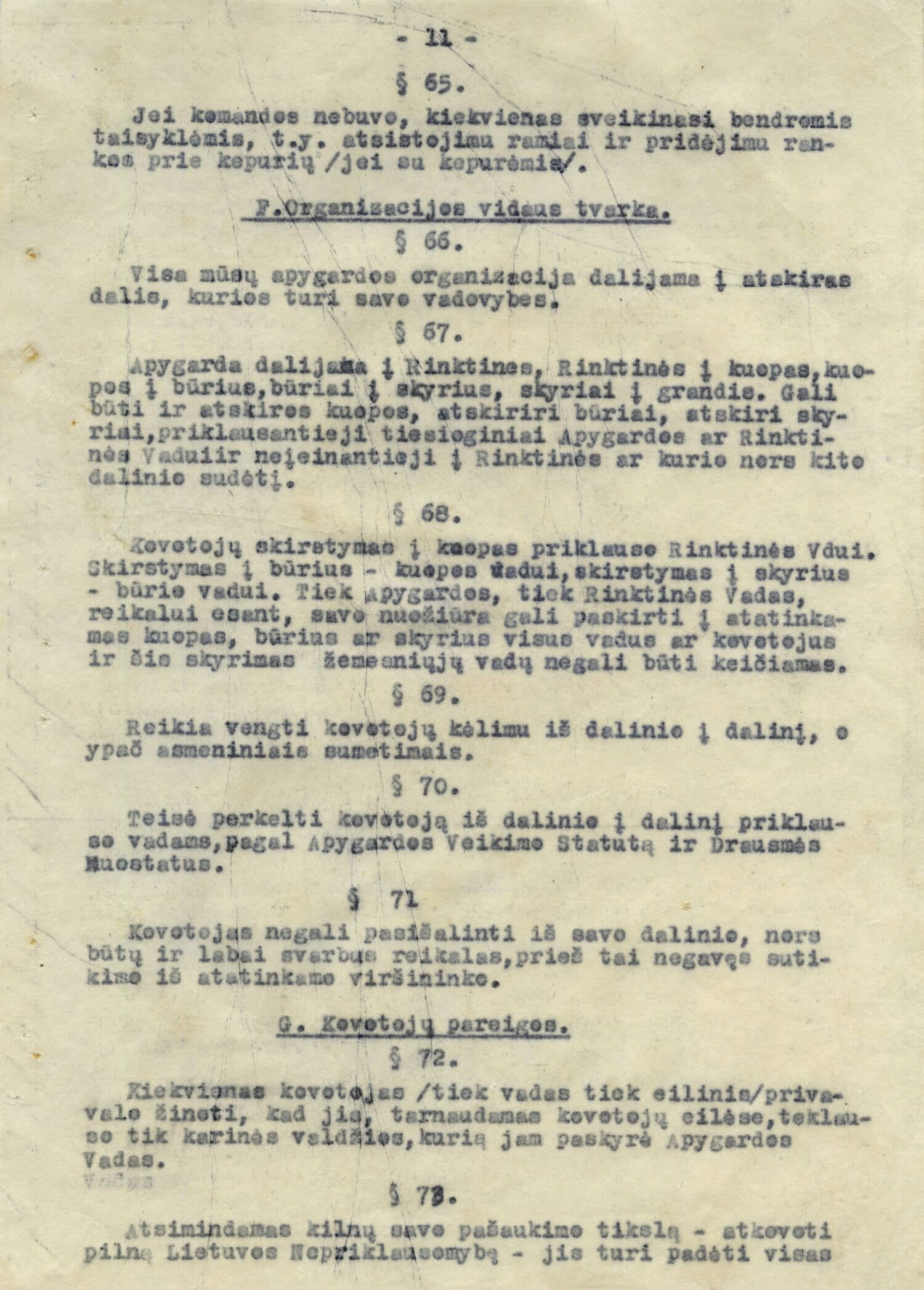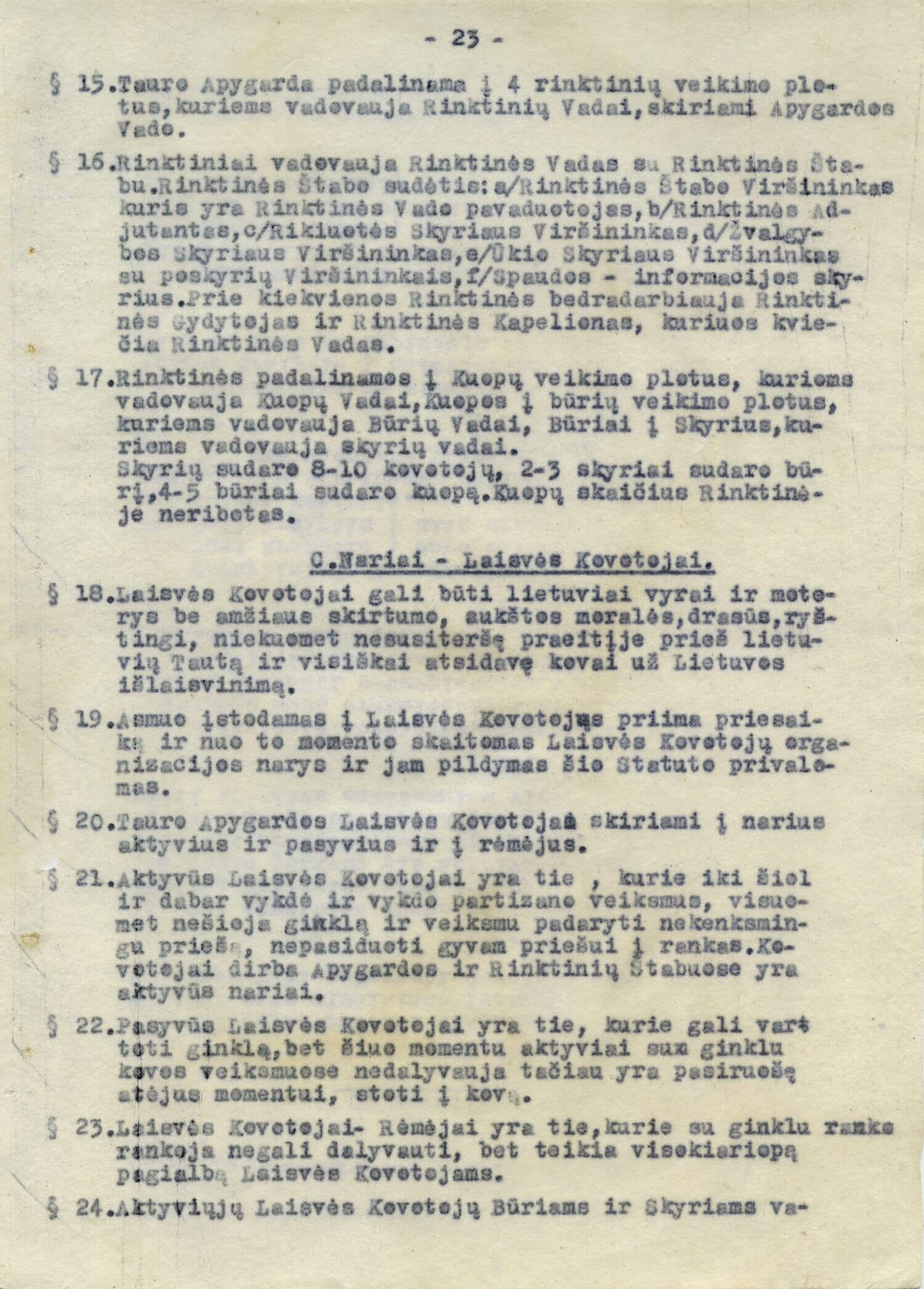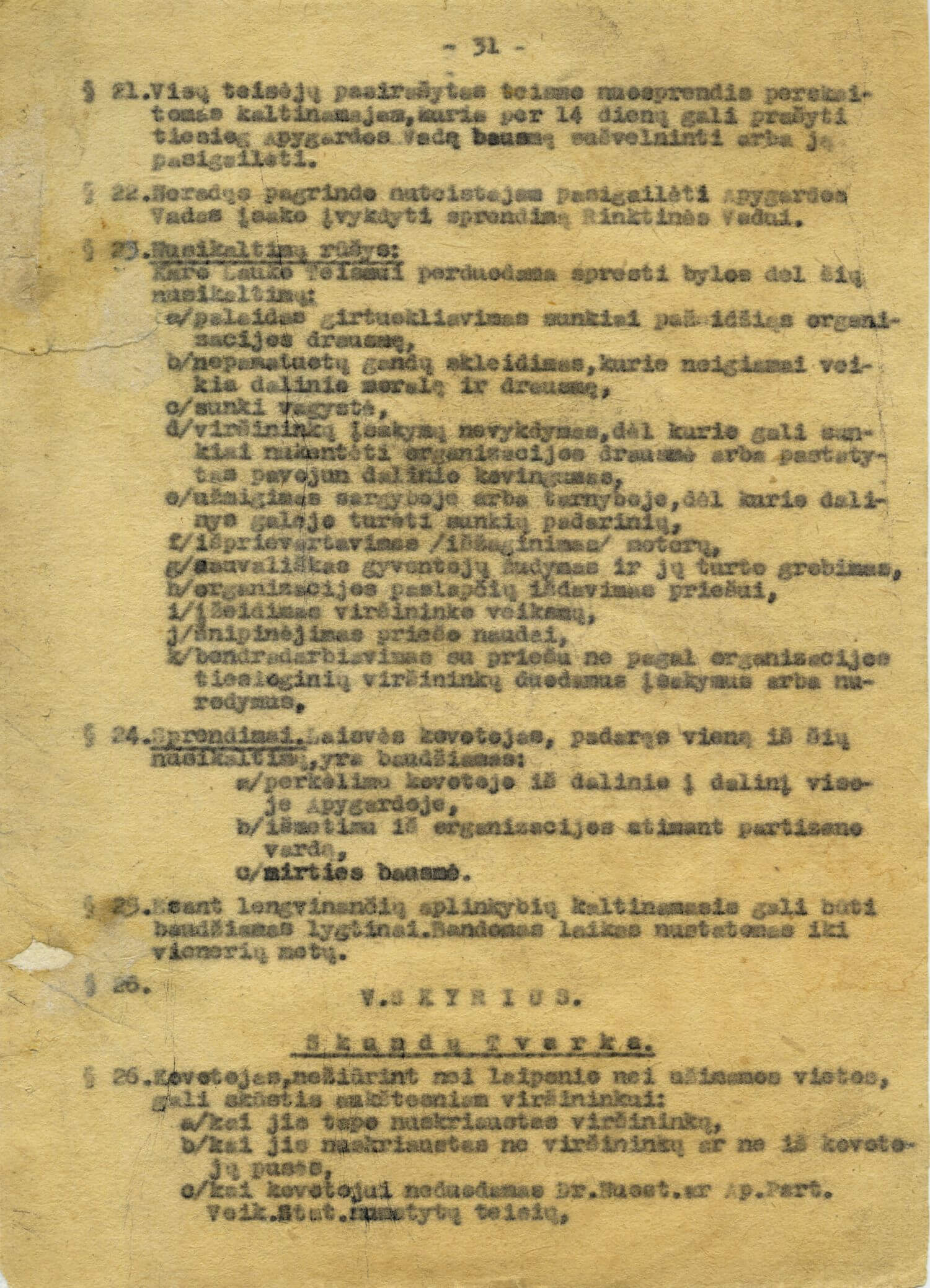 Tauro apygardos „Veikimo statutas“. Parengtas 1946–1948 m.