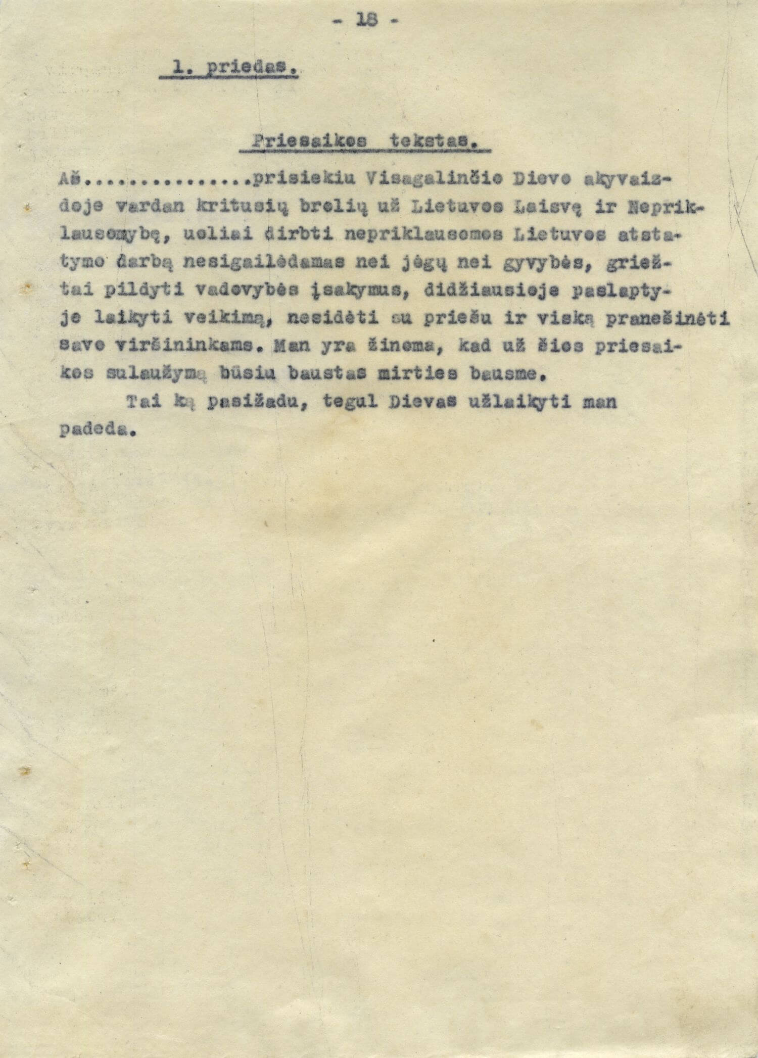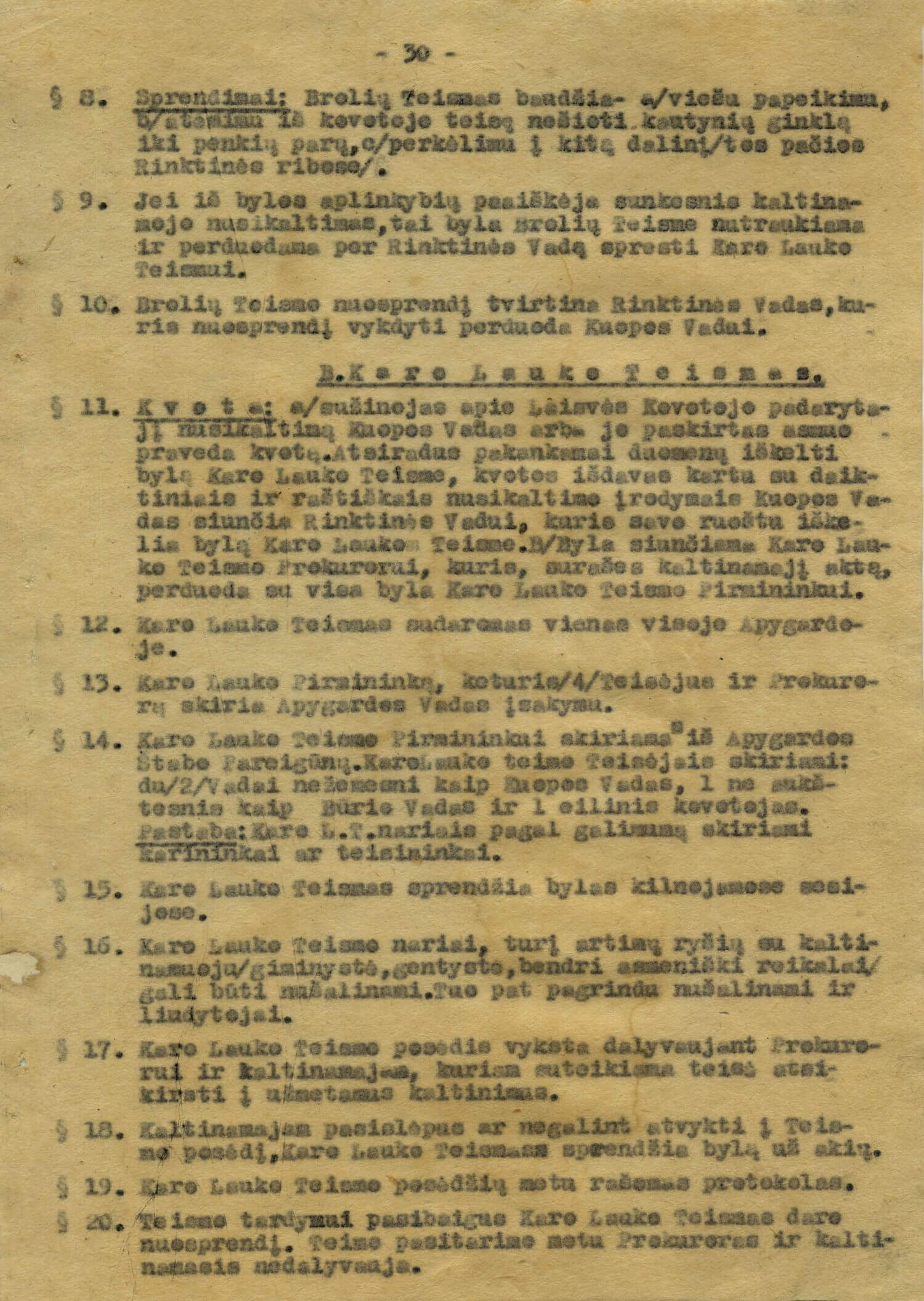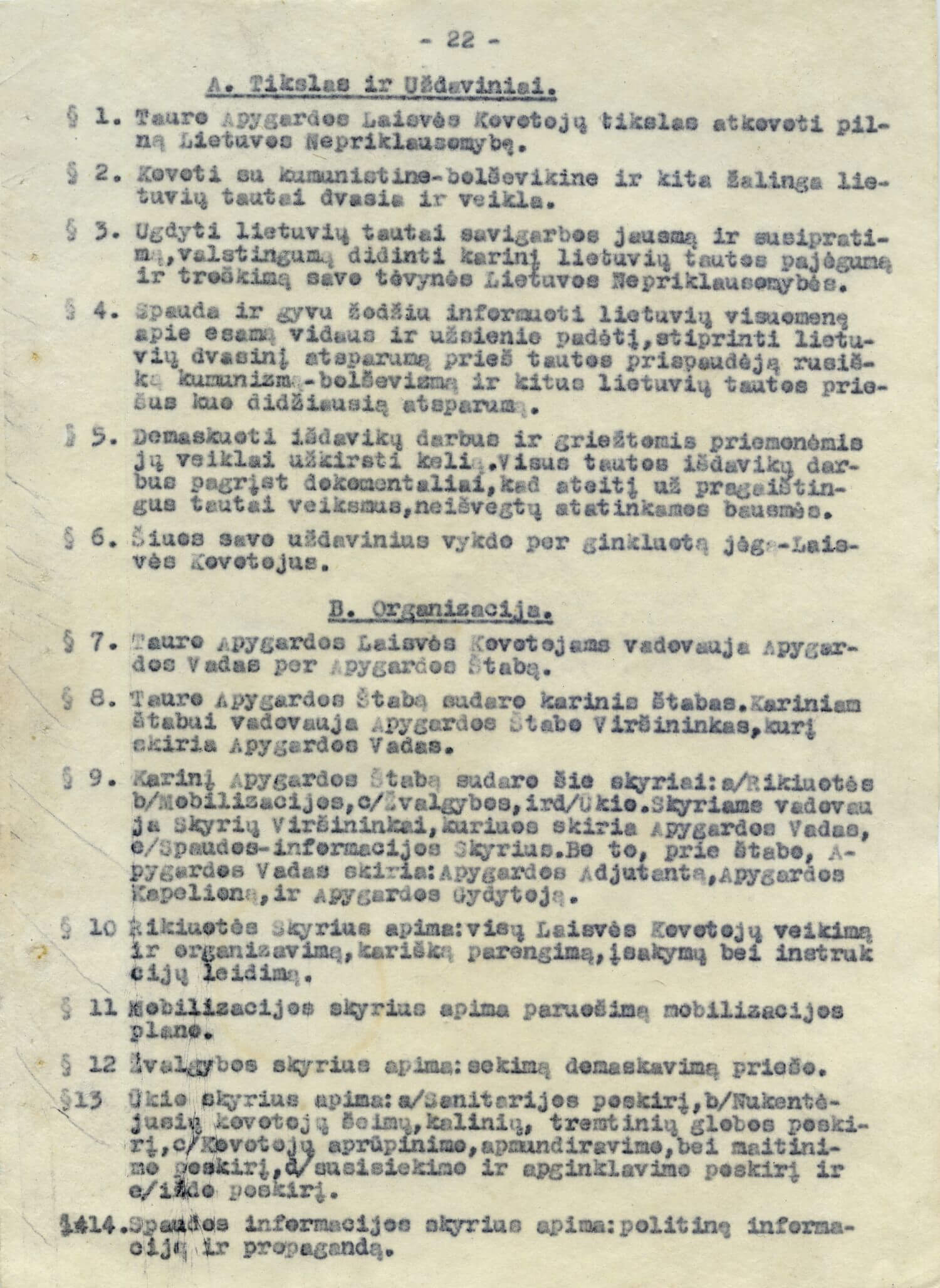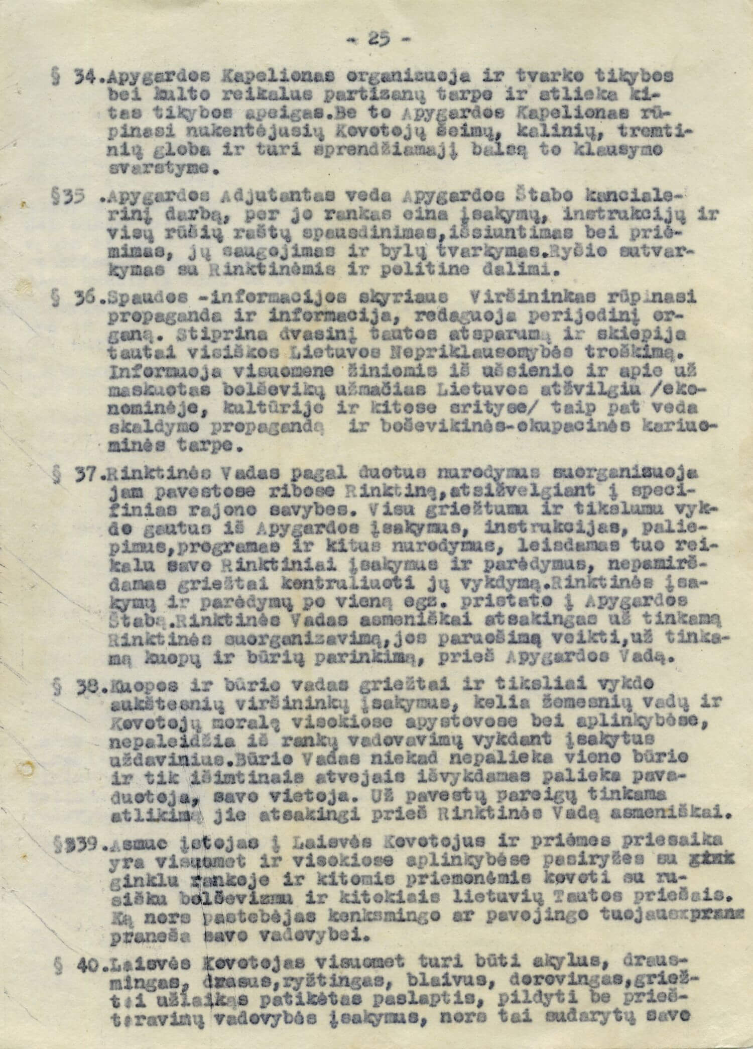 Tauro apygardos „Veikimo statutas“. Parengtas 1946–1948 m.