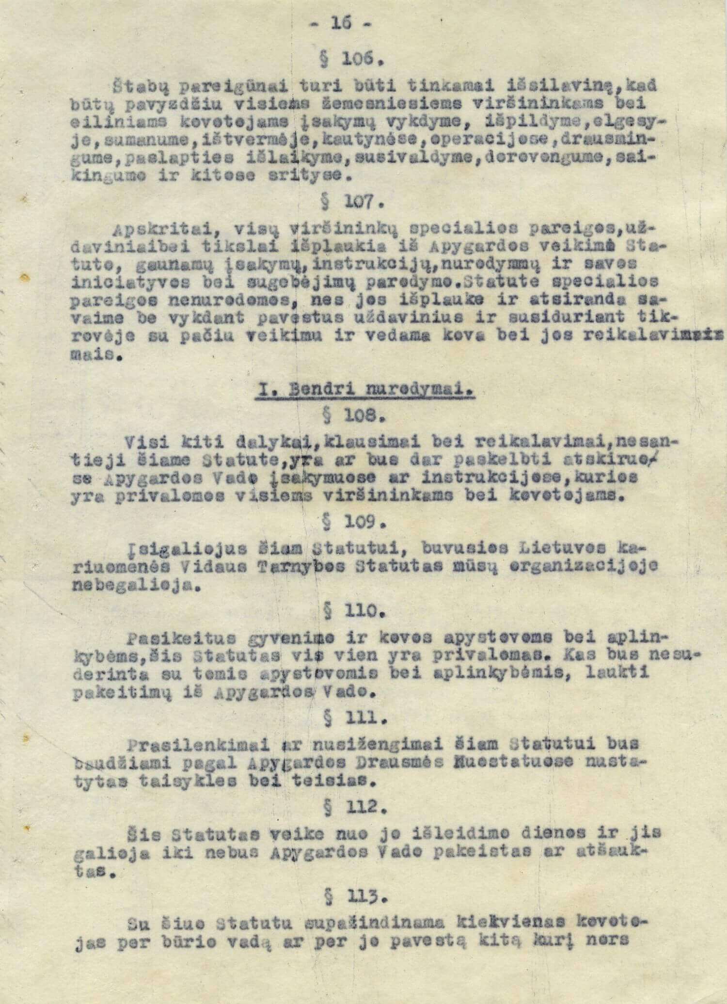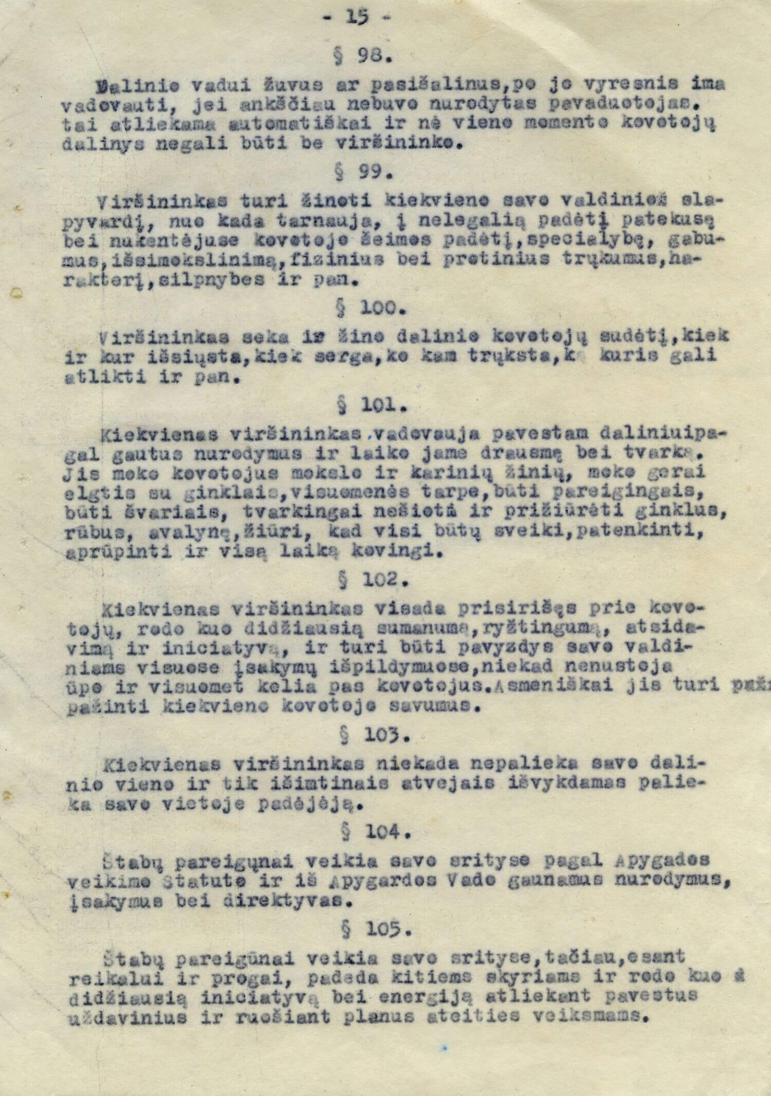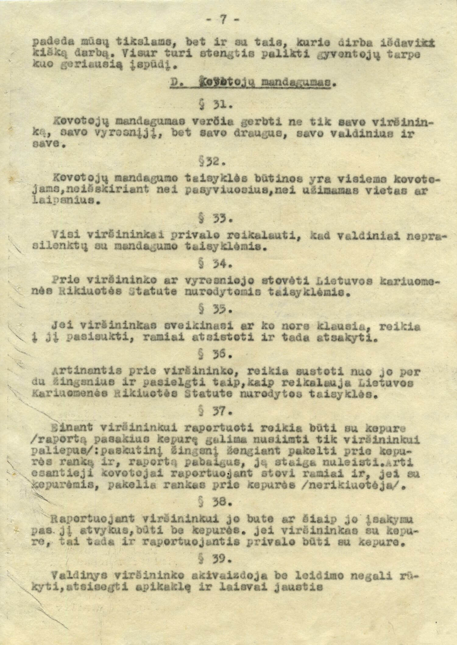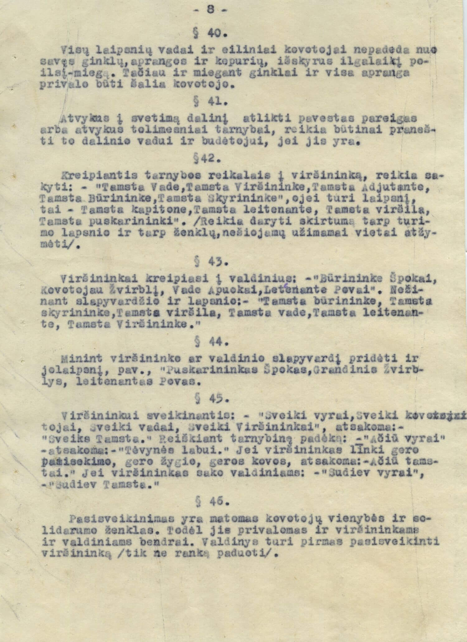 Tauro apygardos „Vidaus tarnybos statutas“. Parengtas 1948 m.