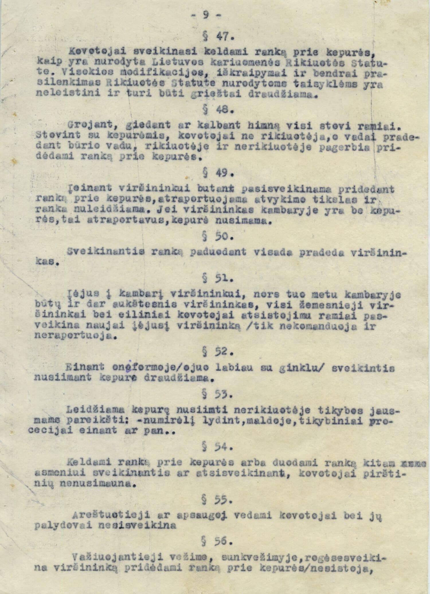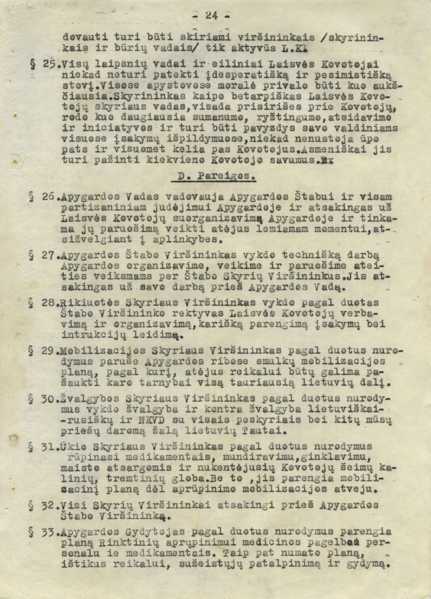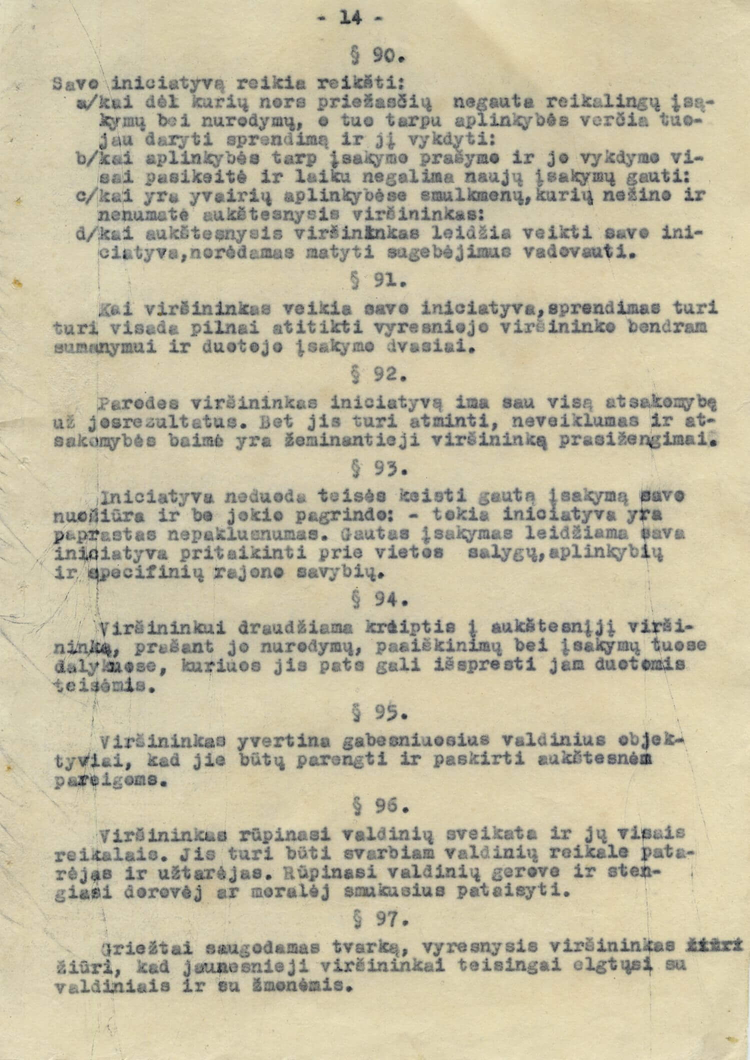 Tauro apygardos „Vidaus tarnybos statutas“. Parengtas 1948 m.
