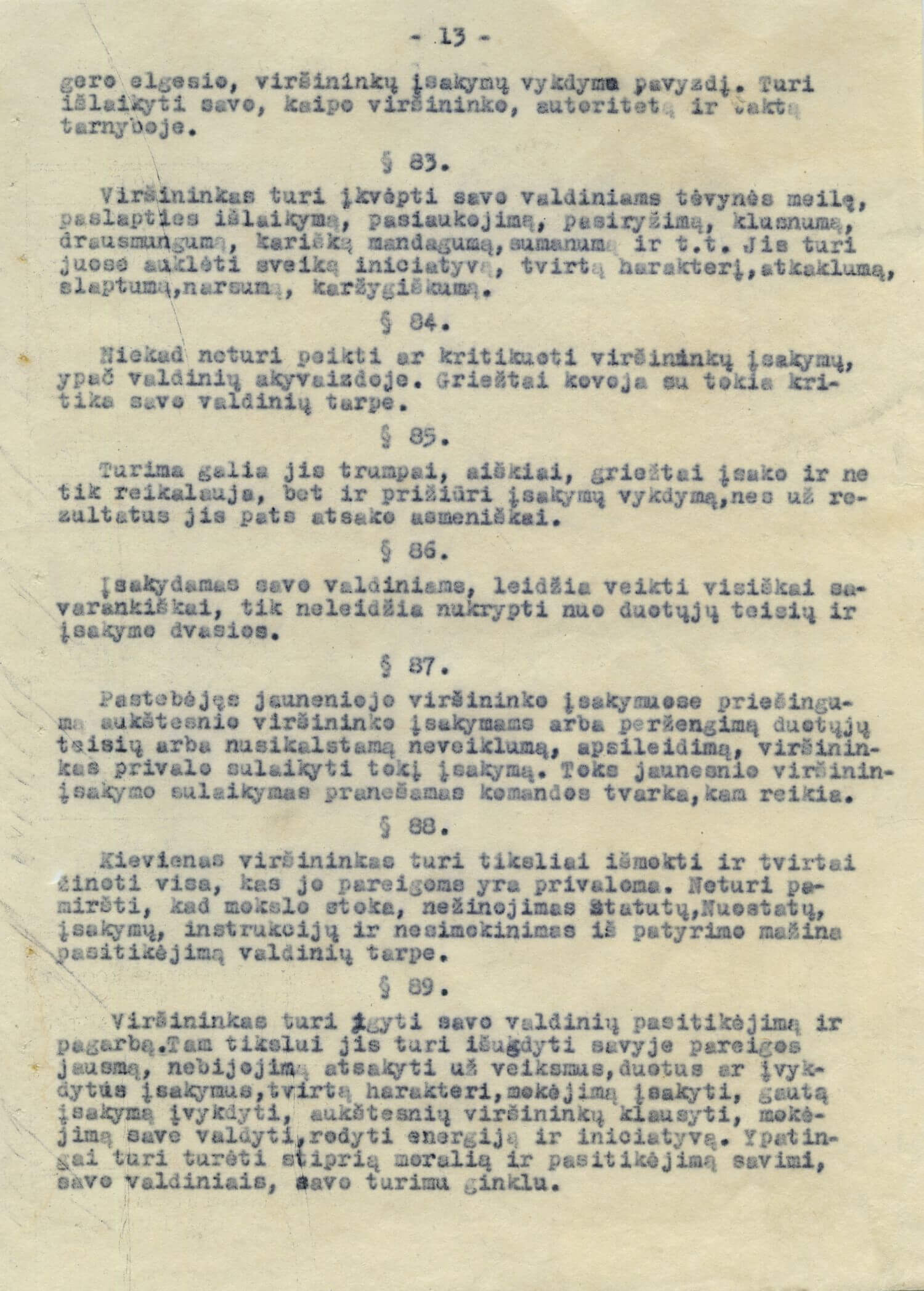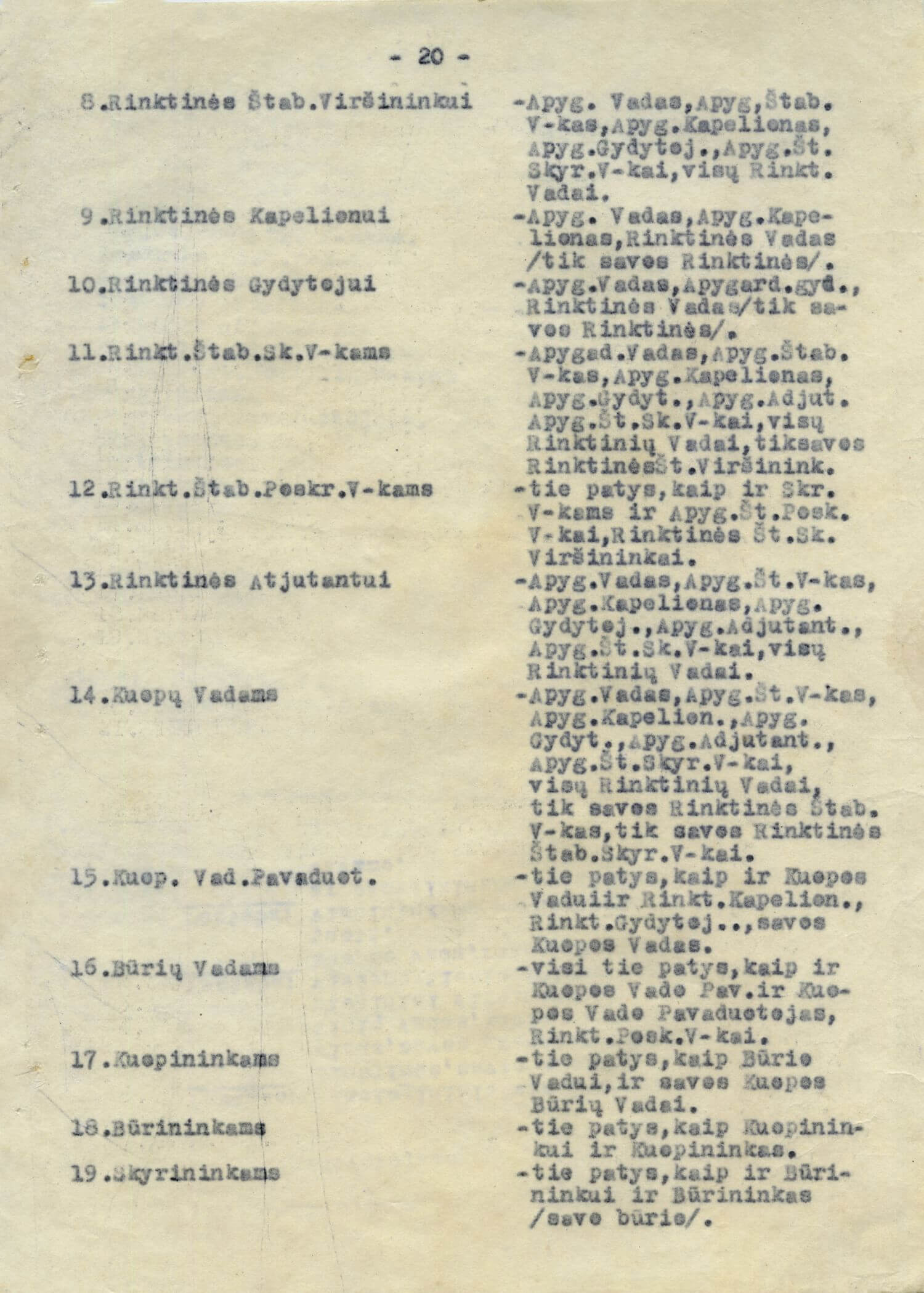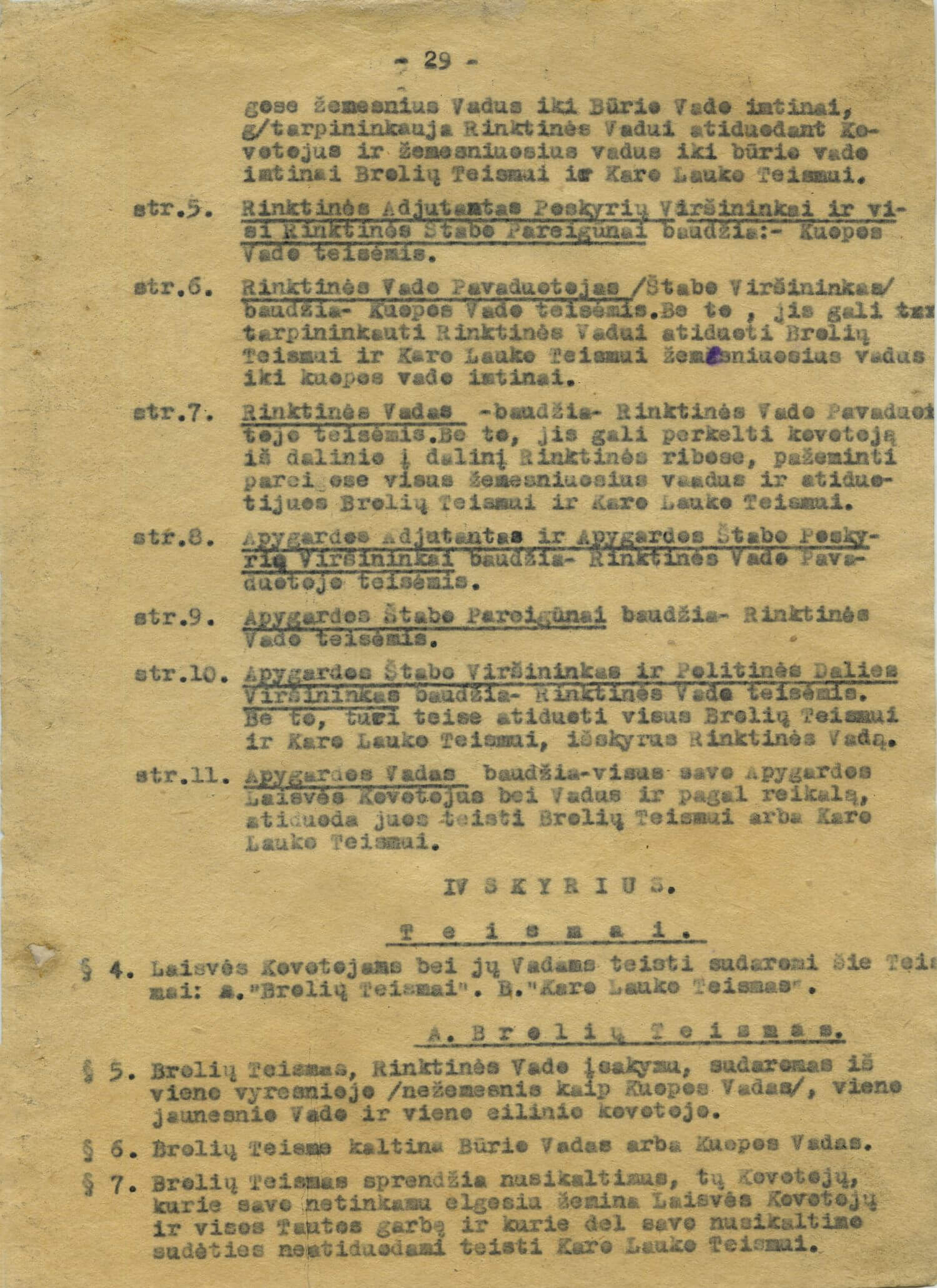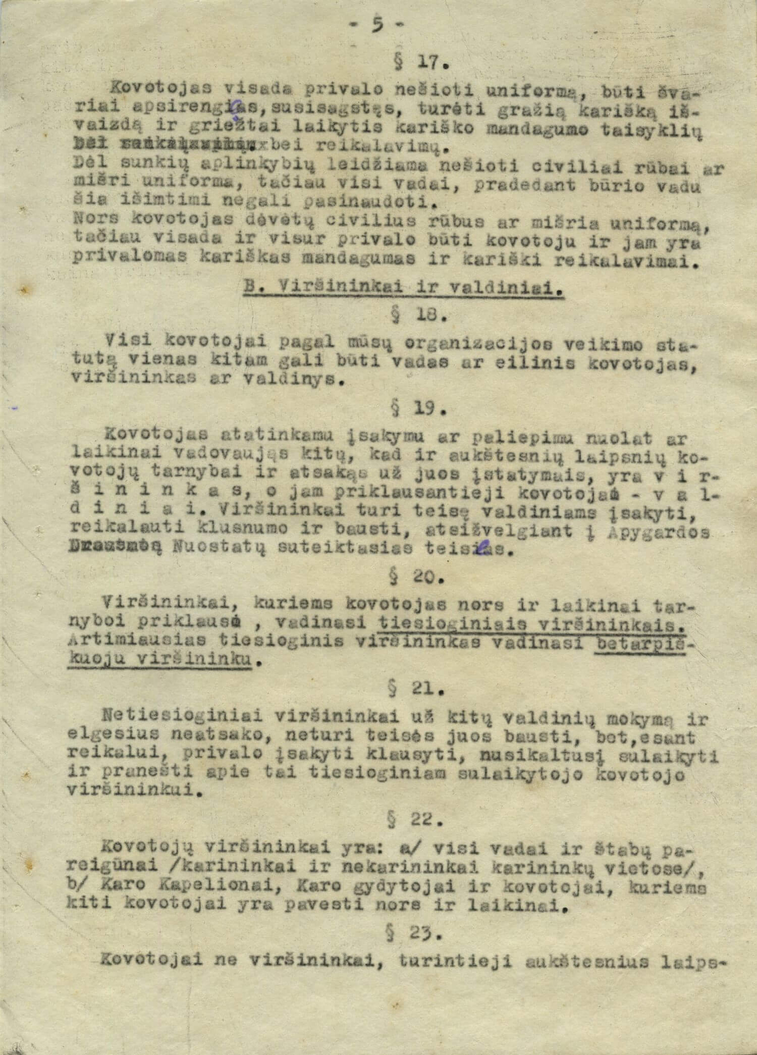 Tauro apygardos „Vidaus tarnybos statutas“. Parengtas 1948 m.