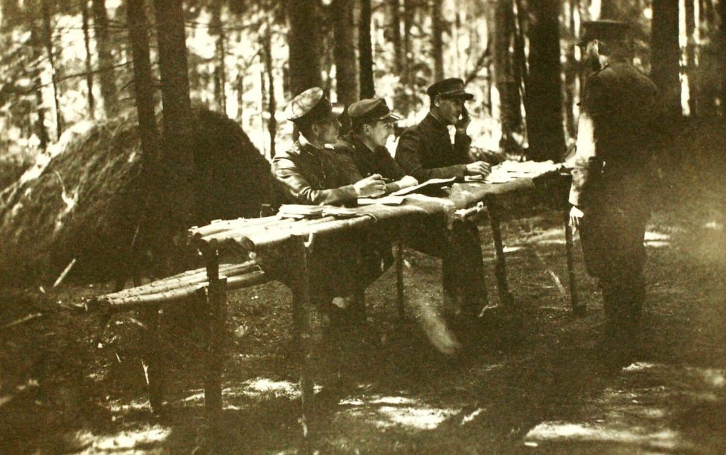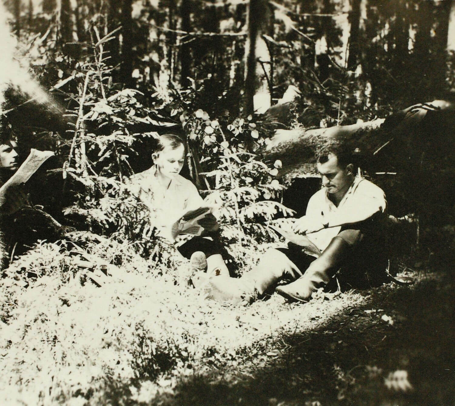 Mokomosios kuopos partizanai ruošiasi pamokoms. Kazlų Rūdos miškas, 1947 m. rugpjūčio 17 d.