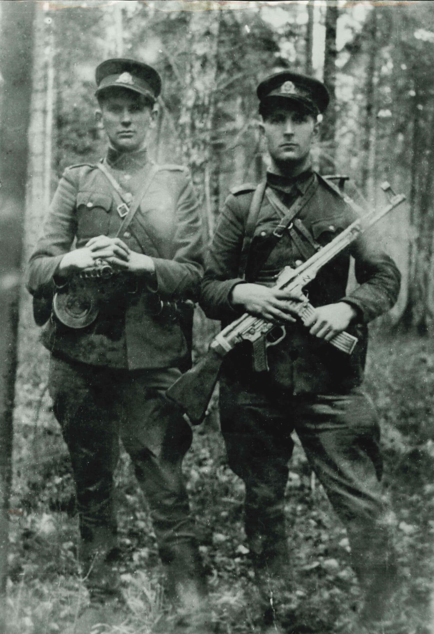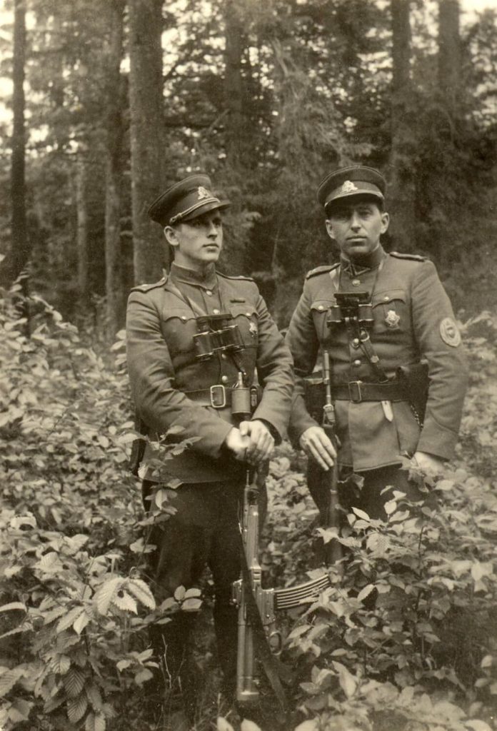 Tauro apygardos vadas Jonas Aleščikas-Rymantas (dešinėje) ir apygardos Vytauto rinktinės vadas Vytautas (Vitalius) Gavėnas-Vampyras, Granitas, 1948 m.