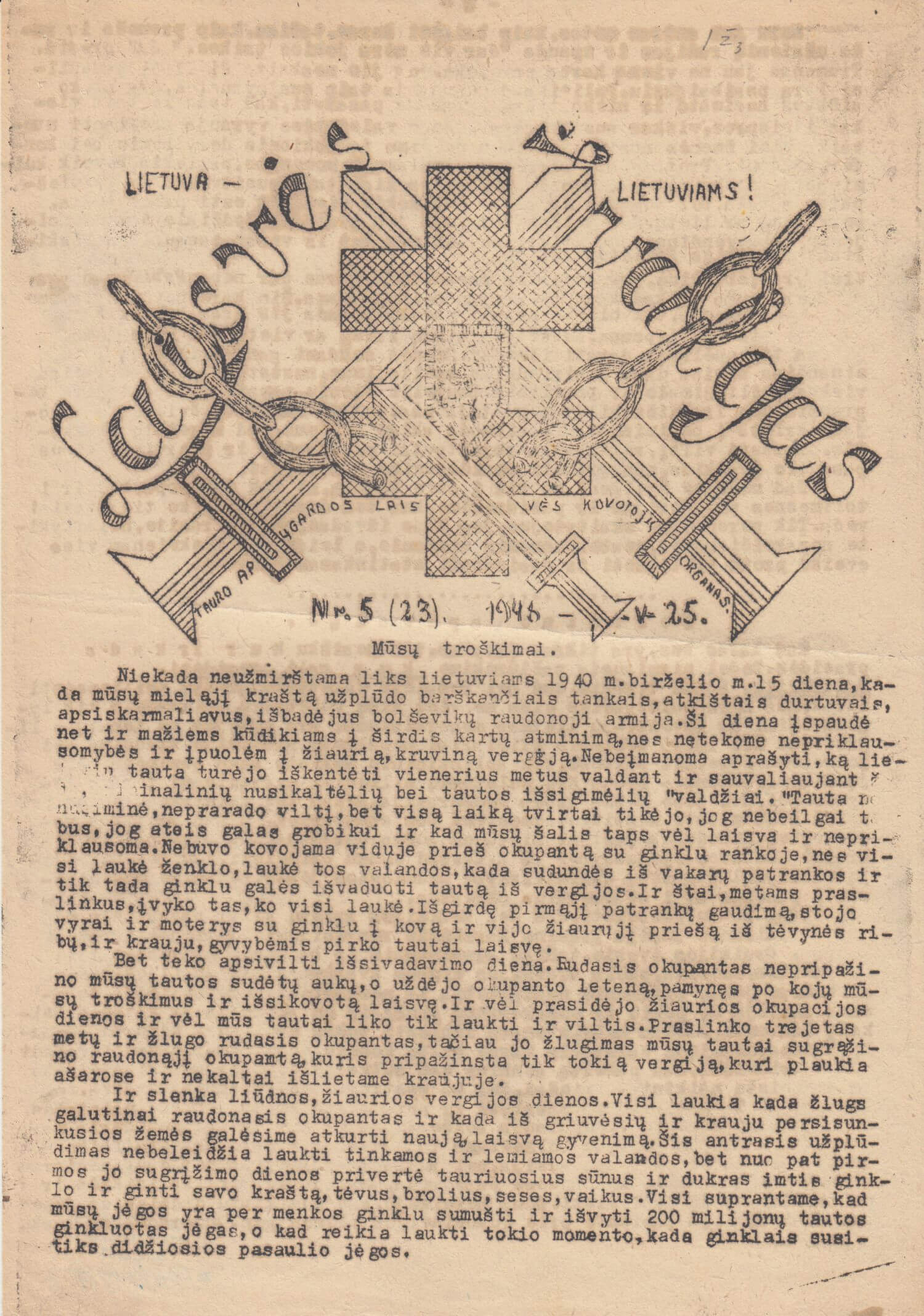 Tauro apygardos laikraštis „Laisvės žvalgas“. 1948 m. spalio 25 d. Nr. 5 (23).
