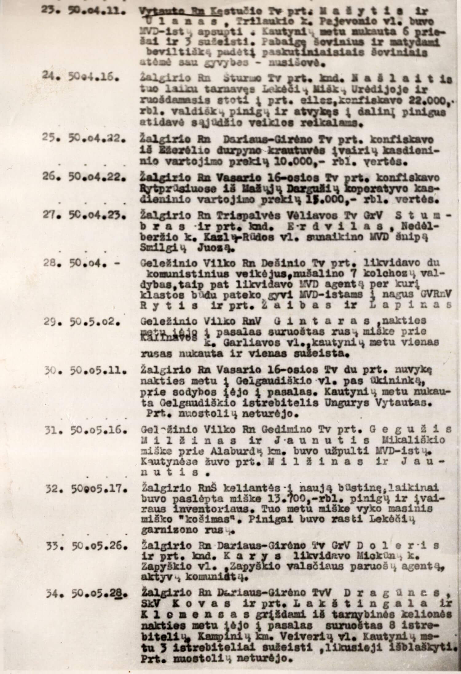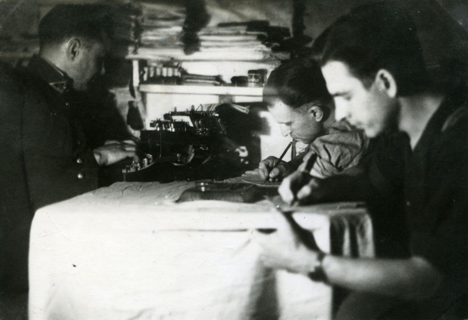 Tauro apygardos Vytauto rinktinės štabo pareigūnai darbo metu. 1949 m. balandžio 5 d.