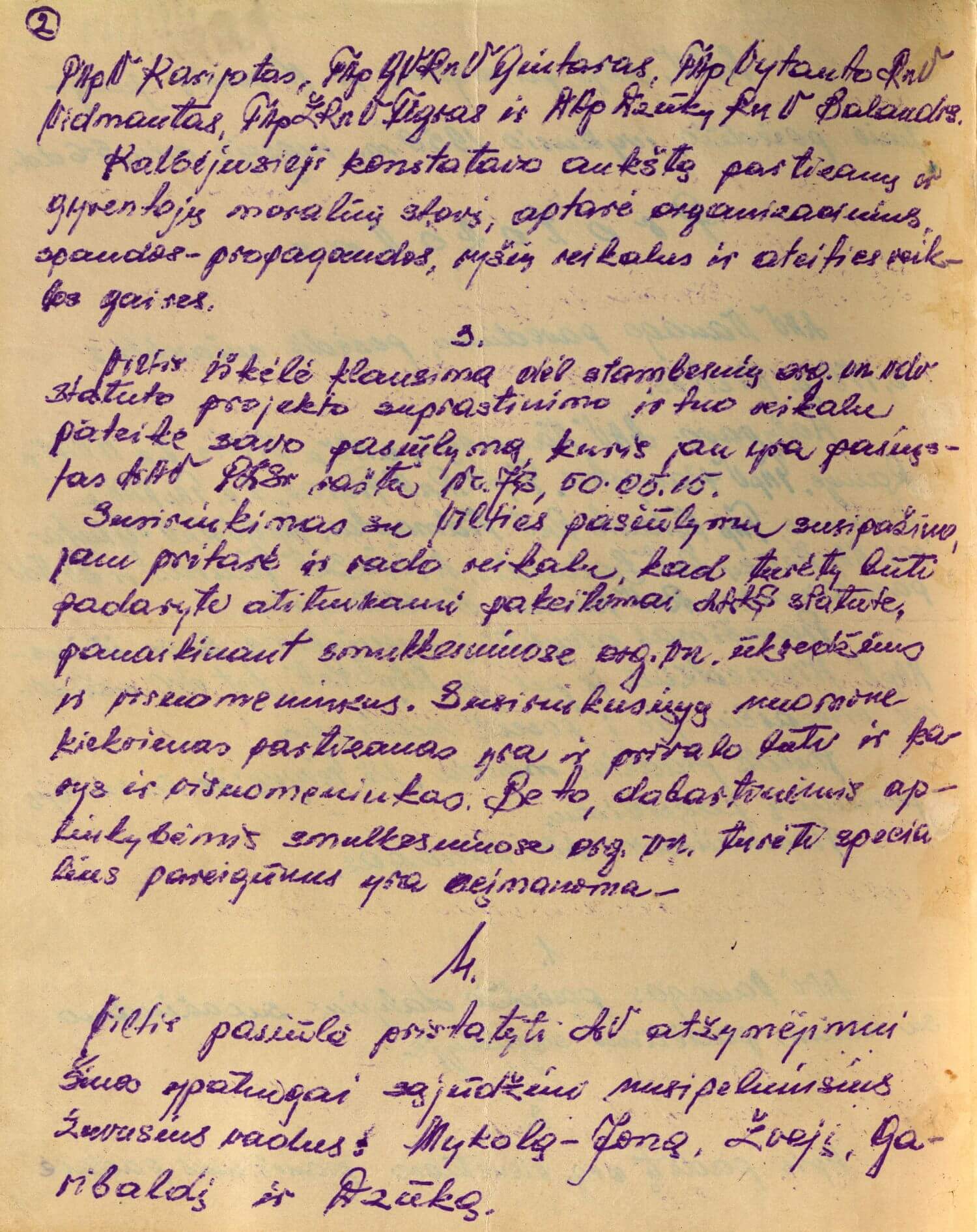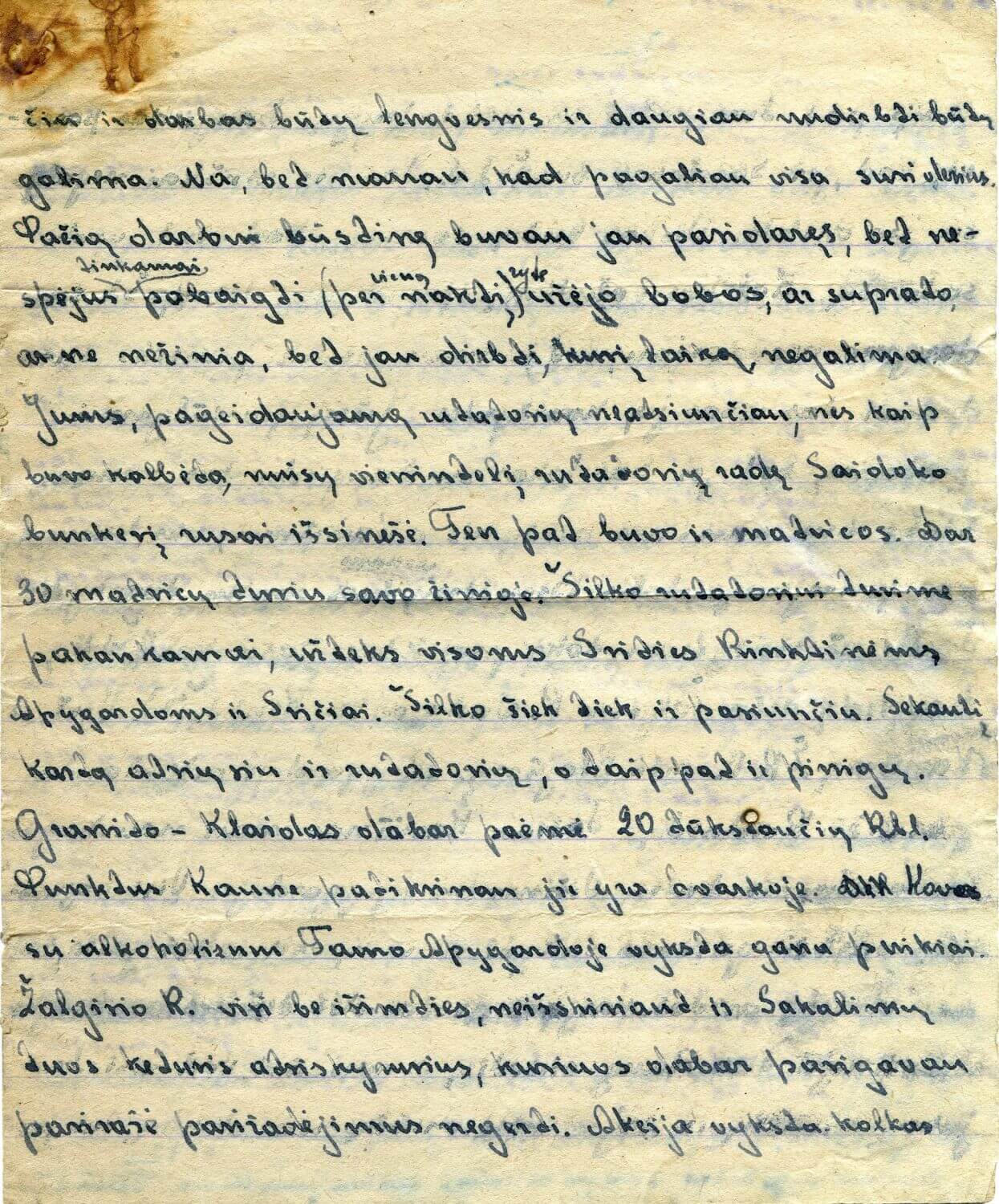 Viktoro Vitkausko-Saidoko laiškas rašytas Pietų Lietuvos (Nemuno) srities vadui Adolfui Ramanauskui-Vanagui. Laiške informuojama apie Tauro apygardos vado Aleksando Grybino-Fausto žūtį. 1949 m. rugsėjo 30 d.
