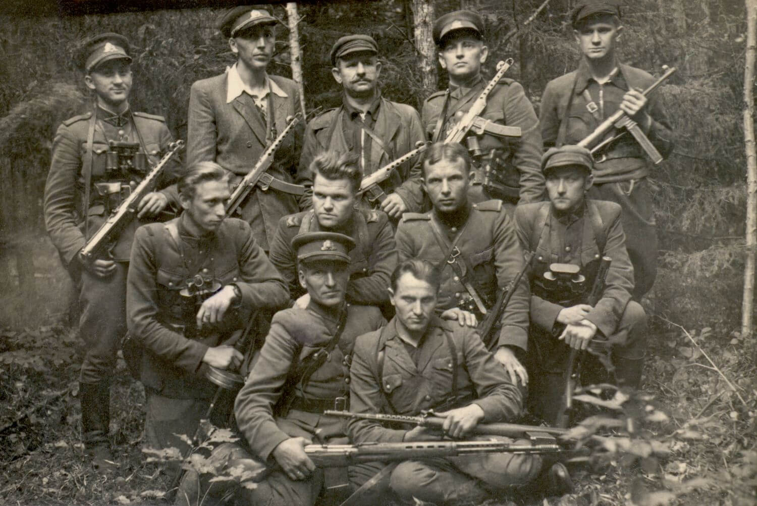 Iš kairės: Juozas Ališauskas-Klaidas, Stasys Ališauskas-Kalinys ir rinktinės vadas Vytautas (Vitalius) Gavėnas-Vampyras.