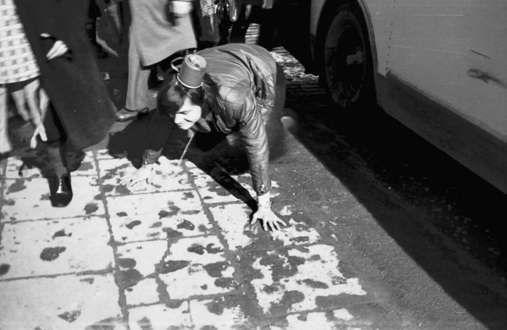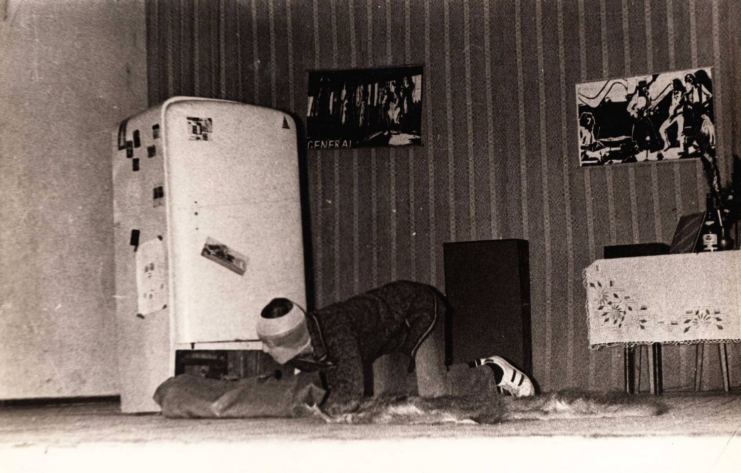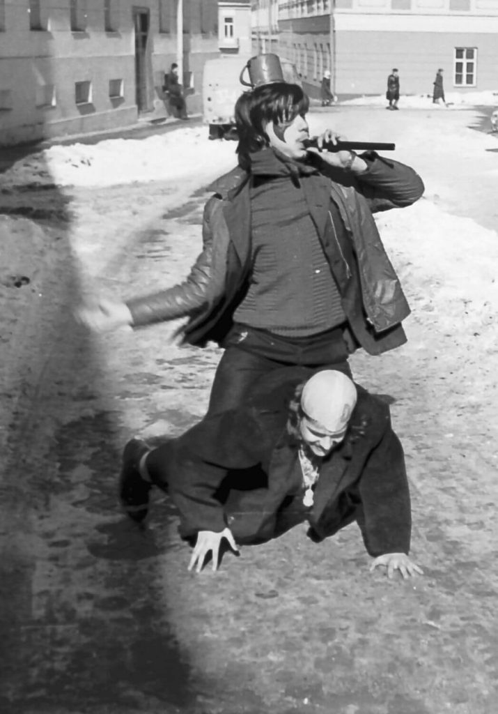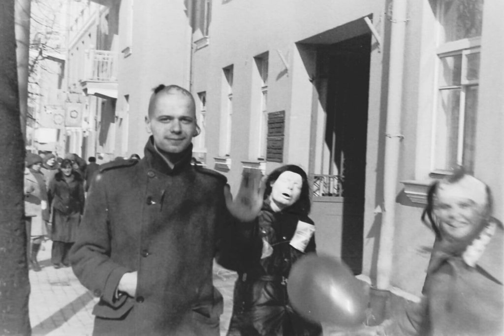 A “cockroach” crawling along a Vilnius sidewalk. In the early 1980s, artist Gitenis Umbrasas and his friends organized happenings in the spring streets of Vilnius Old Town – theatrical protests against the grey routine – celebrating Cockroach Day on March 13. Passersby, upon seeing the strange youth, would gape and freeze in astonishment. The fun was cut short by the militia, who arrested the troublemakers and took them to psychiatric institutions. In terms of health or career, this form of rebellion was nearly suicidal.