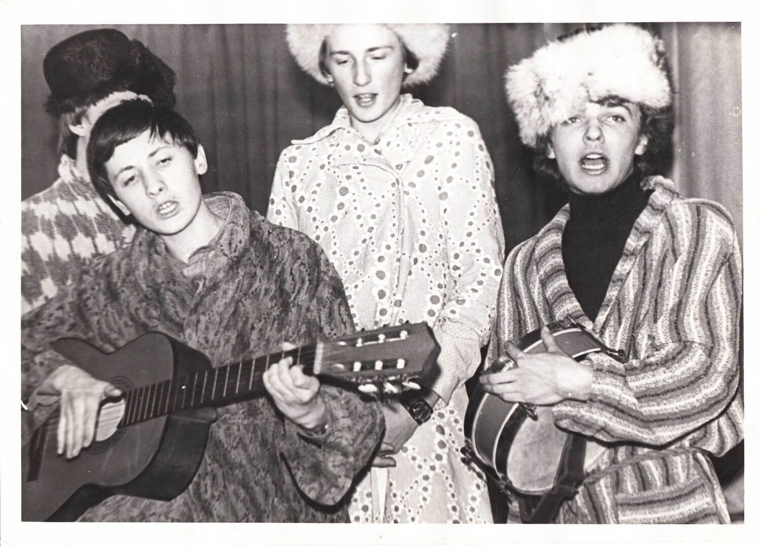 The Modris Tenisons Pantomime Theatre Troupe (1966–1972) that was put together at the Kaunas Drama and Music Theatre captivated local hippies. Young people listened with fascination to the thoughts of the Latvian director about art and philosophy. A few of them started attending pantomime courses. In interacting with young people, the talented director got new ideas and learned to think freely. Pantomime spread at student dances, in the whirlwinds of frolicking youth. Modris’s student and friend, Raganiai (“The Withes”) drummer Natanas Gitkindas, roused the audience by pushing the partitions of the hall as if he was trying to tear down the Berlin Wall. Professional culture intertwined with street culture, and they influenced one another. At the end of the 1970s, during a performance of Light of Happiness at the Vilnius Palace of Culture of Trade Unions by a theatre group founded by actress Valerija Marcinkevičiūtė-Karalienė, verses from Jonas Biliūnas’s poem “Dream” were recited: “Will the Fatherland awaken, will there come a time when darkness, sorcery and slavery will perish?” Not long after, the KGB interrogated the managers of the theatre where Gediminas Storpirštis – who was still in school at the time – was acting. The military men reprimanded them for the “nationalist” poetry recited in the play. It was explained to them that these verses were printed in Soviet Lithuania, in a multi-volume collection Writings by Jonas Biliūnas. In 1973, some students at the Klaipėda Conservatory were almost thrown out of school for a performance they gave for International Women’s Day based on Sergei Yesenin’s poem “The Bitch”.