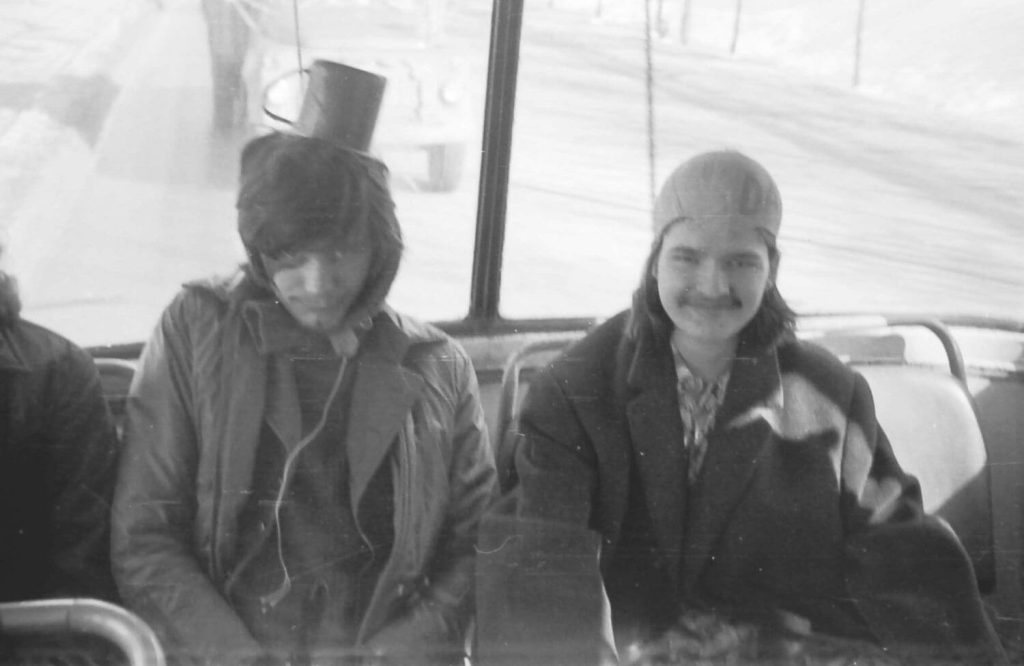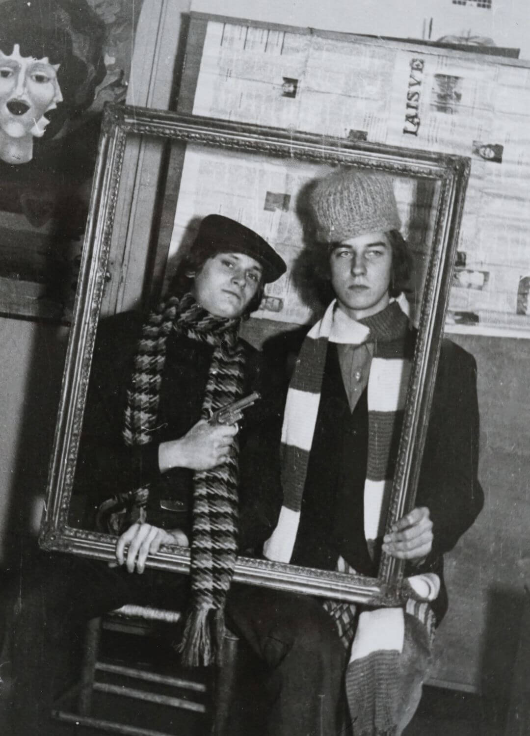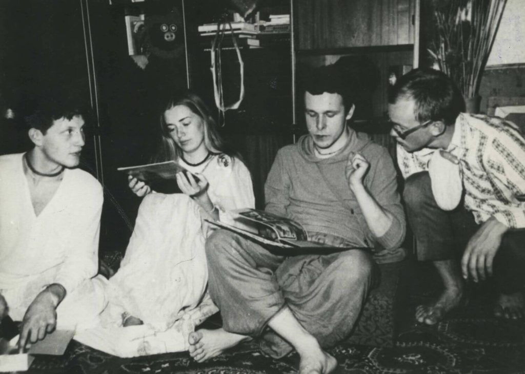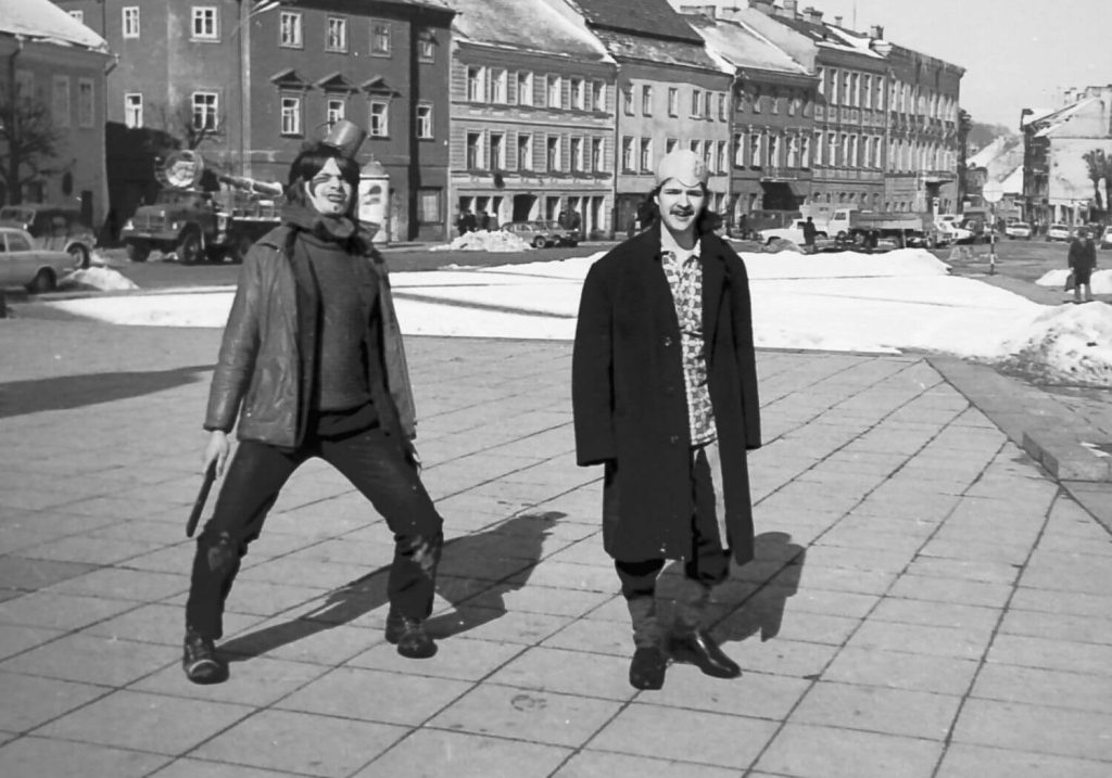 Free-spirited Vilnius youth on the doorstep of the LSSR Writers’ Union bookstore. From left: artist Gitenis Umbrasas, freethinker Liutauras Kazakevičius. When applying to the LSSR State Art Institute, Gitenis failed the loyalty exam organized by the committee because, unable to endure the compositional assignment “40 Years of the Komsomol”, he instead painted a portrait of John the Baptist. Liutauras used to read Bible passages aloud in Vilnius cafés, disturbing the townspeople who gathered for lunch.