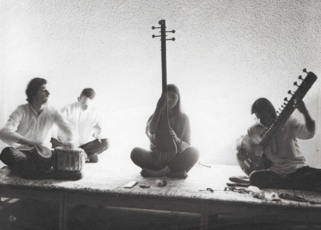 In 1983, Anatolijus Lomonosovas started the Indian classical music ensemble Svara in Lithuania. From left: Rytis Kamičaitis (tabla), Valentinas Zaikinas (bell), Jovita Povilaitė (tanpura), Anatolijus Lomonosovas (sitar).
