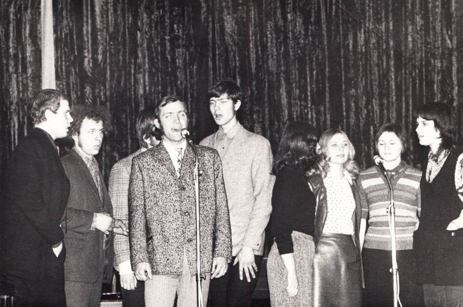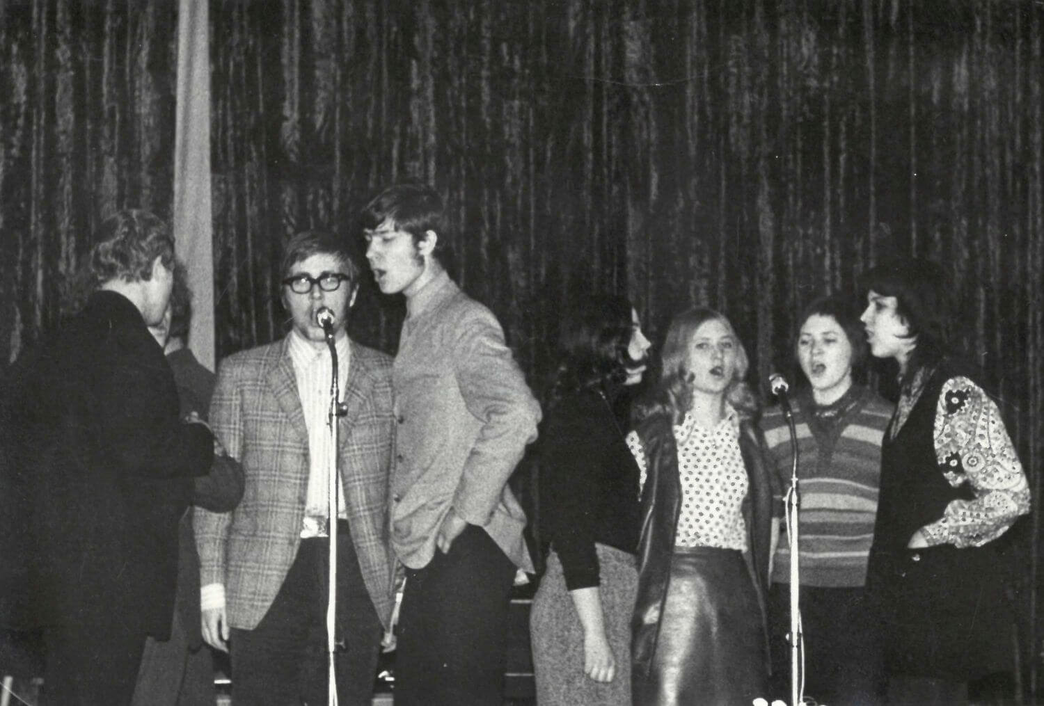 On 20–21 February 1971, the pop club Smūtkeliai, under the banner of the Komsomol organisation, put together a grandiose event in the hall of the Kaunas Polytechnic Institute Faculty of Automation featuring the most famous bands of that time. The KGB didn’t manage to ban it, but it “controlled” it in every way, interfering with the event and persecuting the organisers and participants. Hippies from Lithuania and all corners of the USSR flocked to the festival. The KGB took them off of trains or buses, caught them wherever they could, and sent them out of Kaunas. Gintaras Kušlys, who compiled the book Smūtkeliai, remembers: “[…] hippies were running back and forth, trying to get into the concert, and the militiamen were chasing them… It was really a sight to see. […] it was like a repetition for the ‘Kalanta events’ of 1972 […]” A month later, Smūtkeliai was closed, and the KGB eventually sent Algimantas Šešelgis, one of the organisers of the event, to “serve” in the occupation army near the dangerous USSR–China border. The regime’s lackeys banned the band Raganiai from rehearsing in the hall of the Kaunas Polytechnic Institute and playing at student dances.